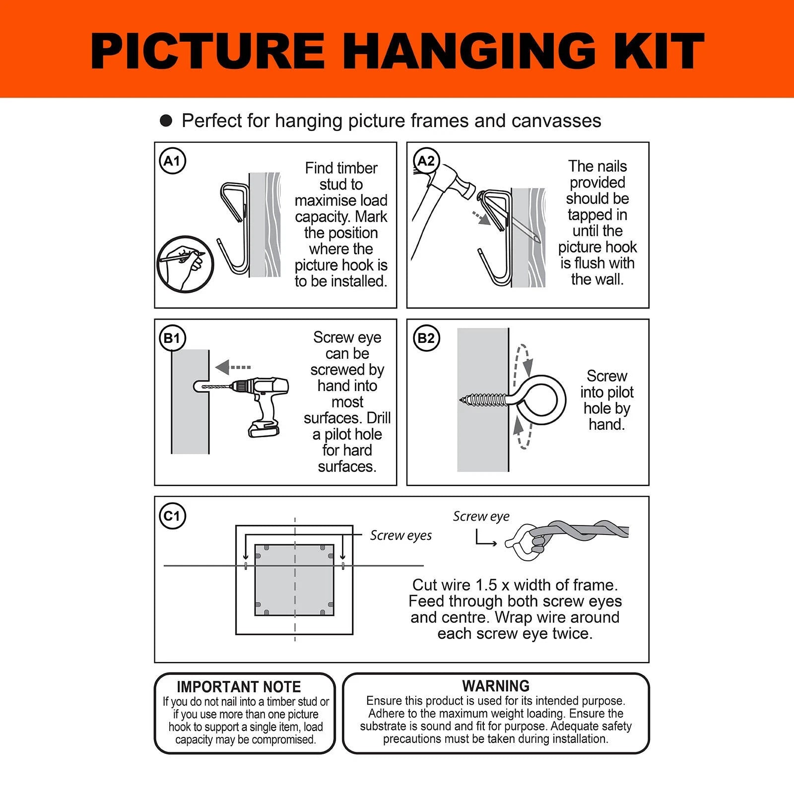 Effortlessly hang your photos and artwork with the Everhang Brass Plated Picture Hanging Kit. Designed for strength and ease of use, this comprehensive kit is suitable for various wall types, making your decorating projects simple and secure.