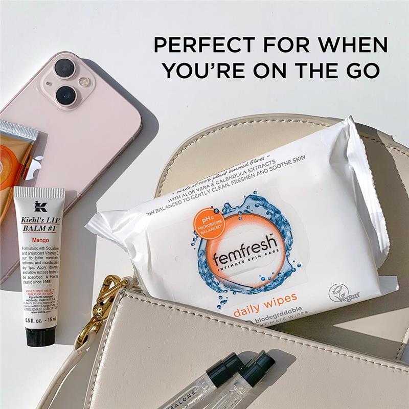 Femfresh™ wipes match the natural pH of intimate skin to help maintain the balance of the skin's natural microbiome. Whether you're traveling, exercising, on your monthly cycle, or simply want to feel fresh and clean, Femfresh Daily Intimate Wipes are a must-have in your personal care routine.