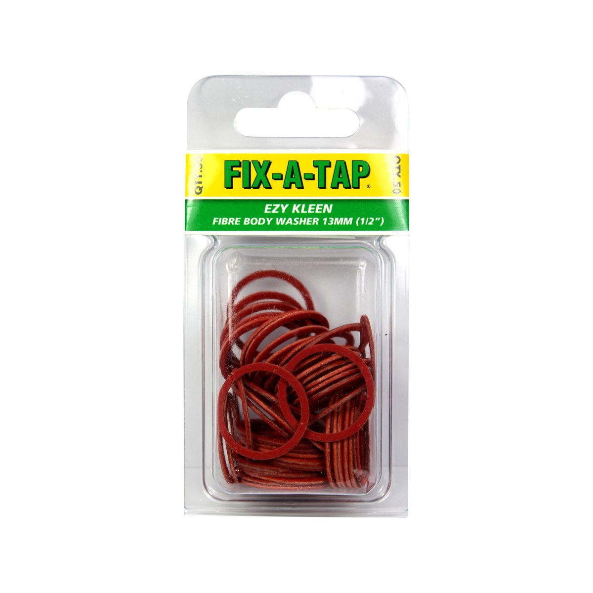 Fix a Tap Ezy Kleen Fibre Body Washer 50 Pack 13mm is designed to repair leaks in indoor taps with a durable fibre material, suitable for both hot and cold water.