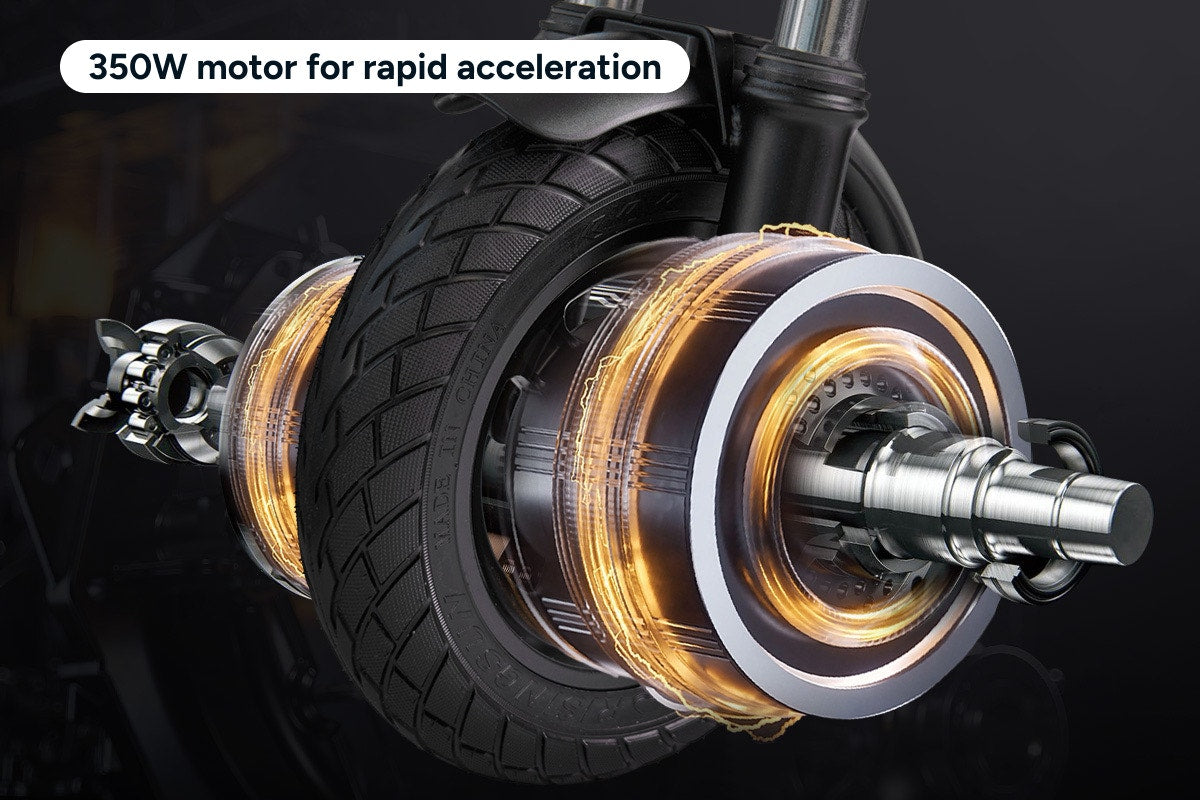 Equipped with a robust 350W motor, the Fortis Foldable Commuter Electric Scooter delivers a quick, smooth ride ideal for urban travel. Whether you’re tackling hilly paths or zipping through the city, the motor provides reliable acceleration and strong performance without breaking a sweat.