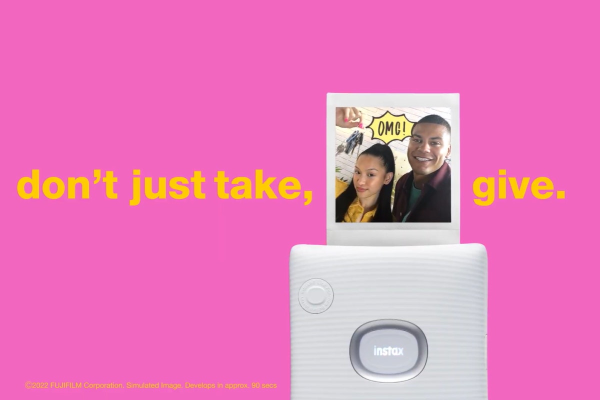 The Fujifilm Instax Square Link Printer is sleek and compact. Add AR effects, frames, and stickers via the Instax Connect via the Square Link app to personalize your prints.
