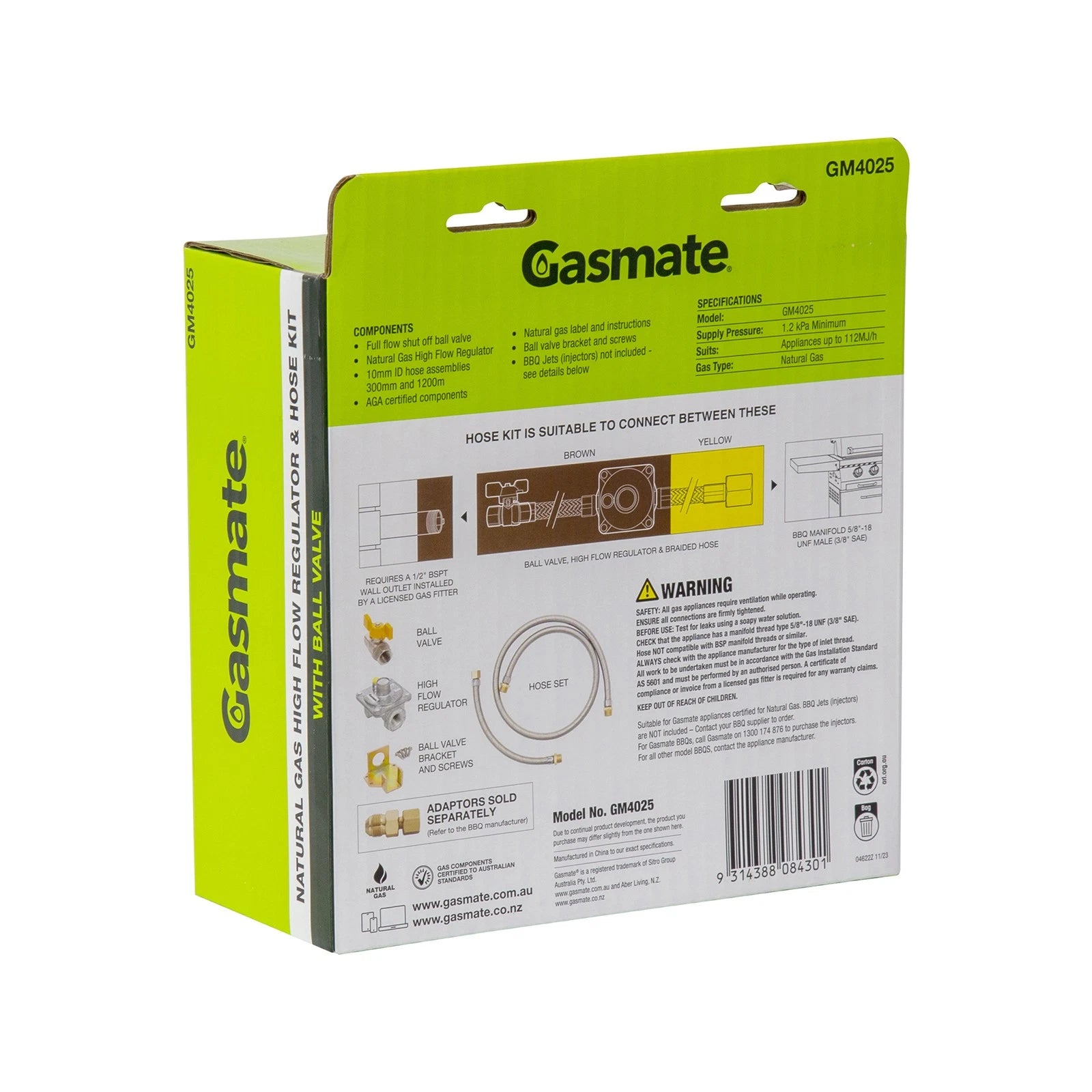 Upgrade your BBQ with the Gasmate Natural Gas Highflow Conversion Kit, designed for safe and efficient conversion to natural gas. Perfect for most 2-6 burner BBQs, this kit ensures compliance with safety standards and maintains your BBQ warranty when installed correctly by licensed professionals.