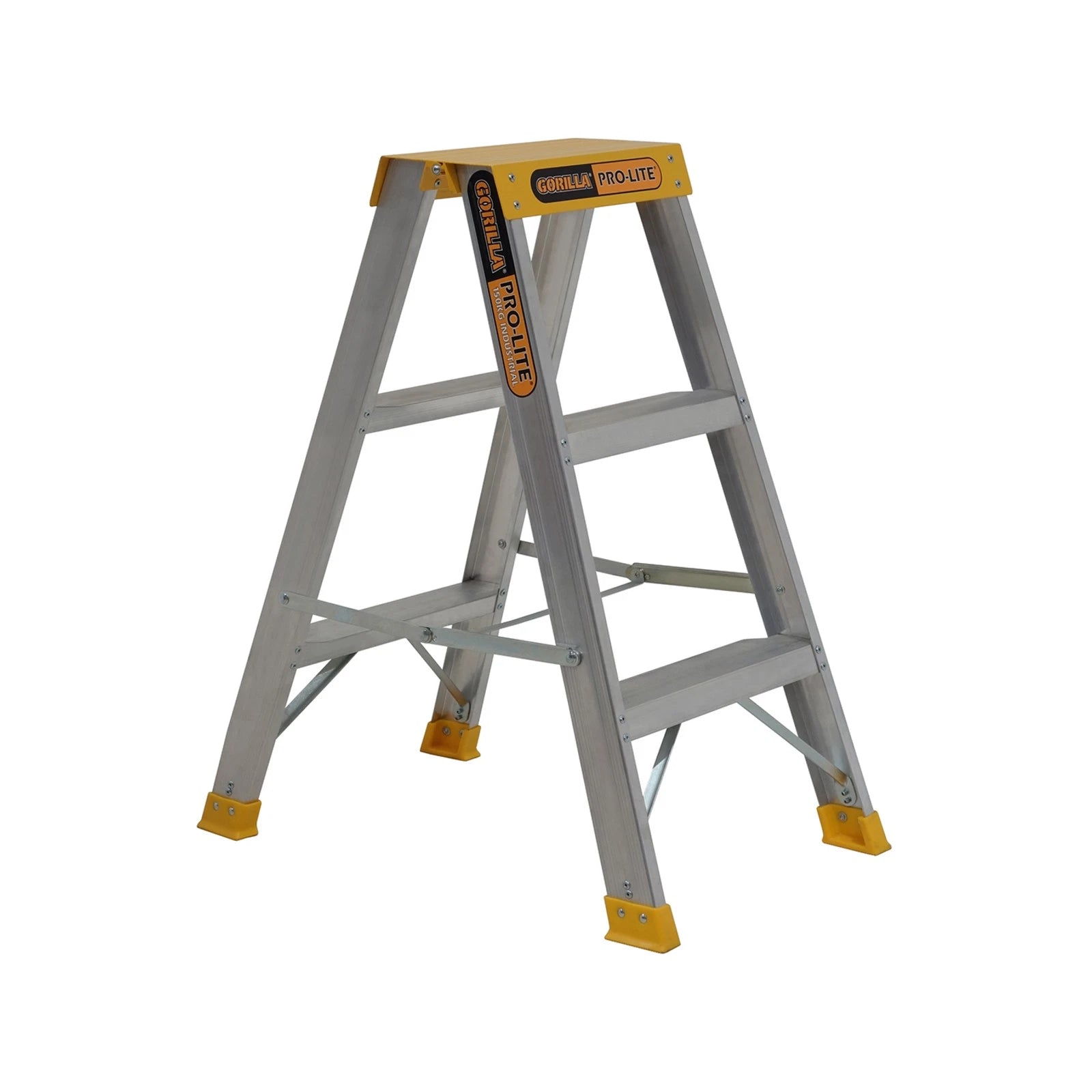 1 x Gorilla 150kg Pro-Lite 3 Step Double Sided Aluminium Ladder