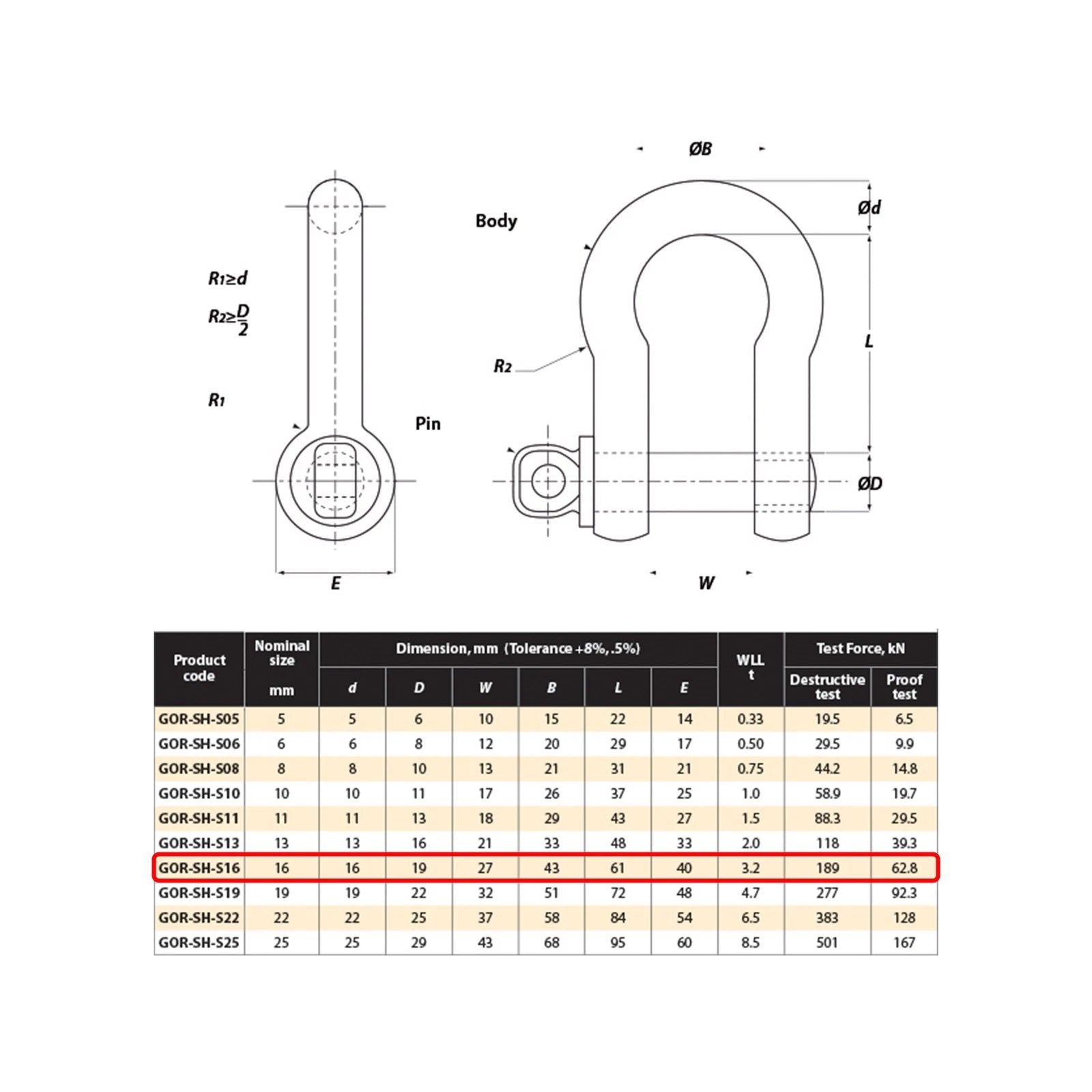 Includes 1 x Gorilla 16mm 3.25T Grade S Lifting Bow Shackle.