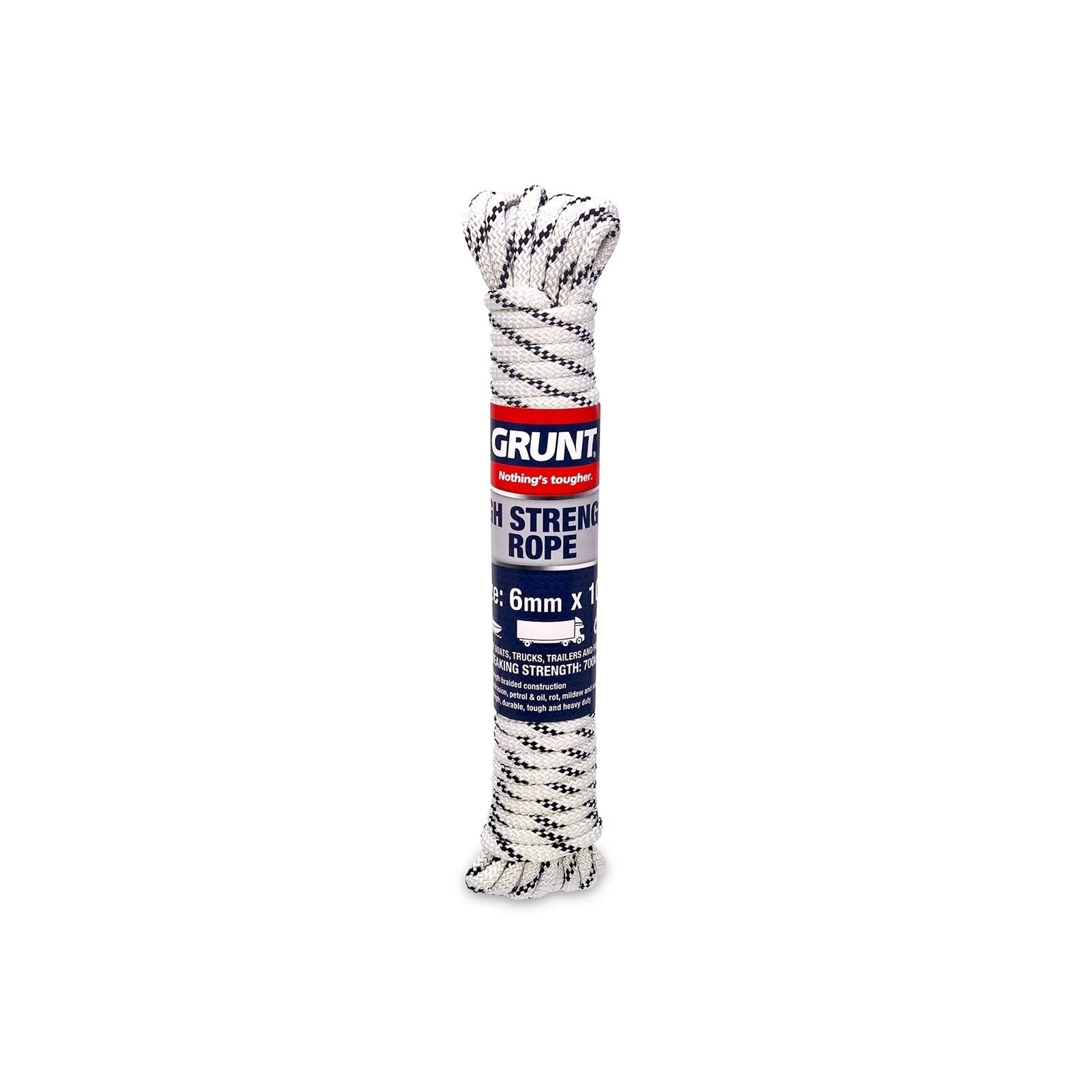 Discover the durability and versatility of the Grunt 6mm x 10m High Strength Rope, designed for demanding applications. Whether you're working on boats, trucks, trailers, or farm tasks, this heavy-duty rope offers reliable performance and resilience in various environments.