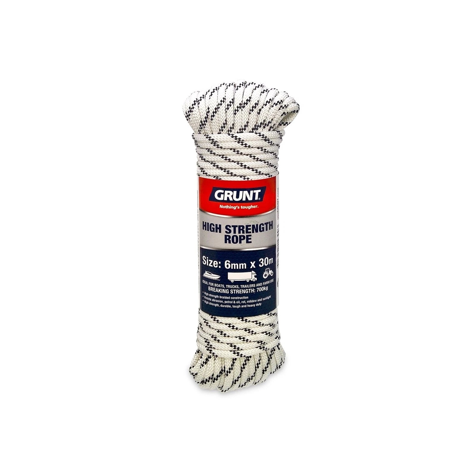 Discover the durability and versatility of the GRUNT 6mm x 30m High Strength Rope. Designed for demanding applications, this heavy-duty rope offers reliable performance for boating, farming, trucking, and transport needs. Crafted from high-quality polyester, it ensures strength and resistance in various conditions.