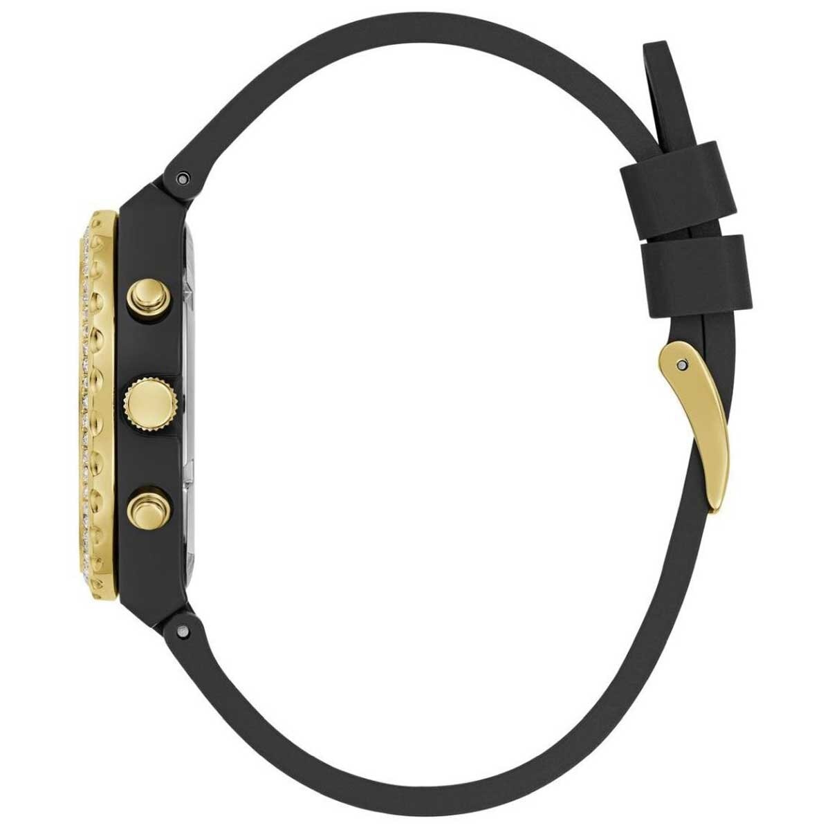 Introducing the GUESS Diana Multifunction Women's Watch GW0697L2, a stunning blend of style and functionality. This signature sports luxe watch features a luxurious gold crystal-enriched bezel and pushers, complemented by a sleek black multifunction dial and a smooth silicone strap. Perfect for any occasion, this watch is designed for the modern woman who values both elegance and practicality.