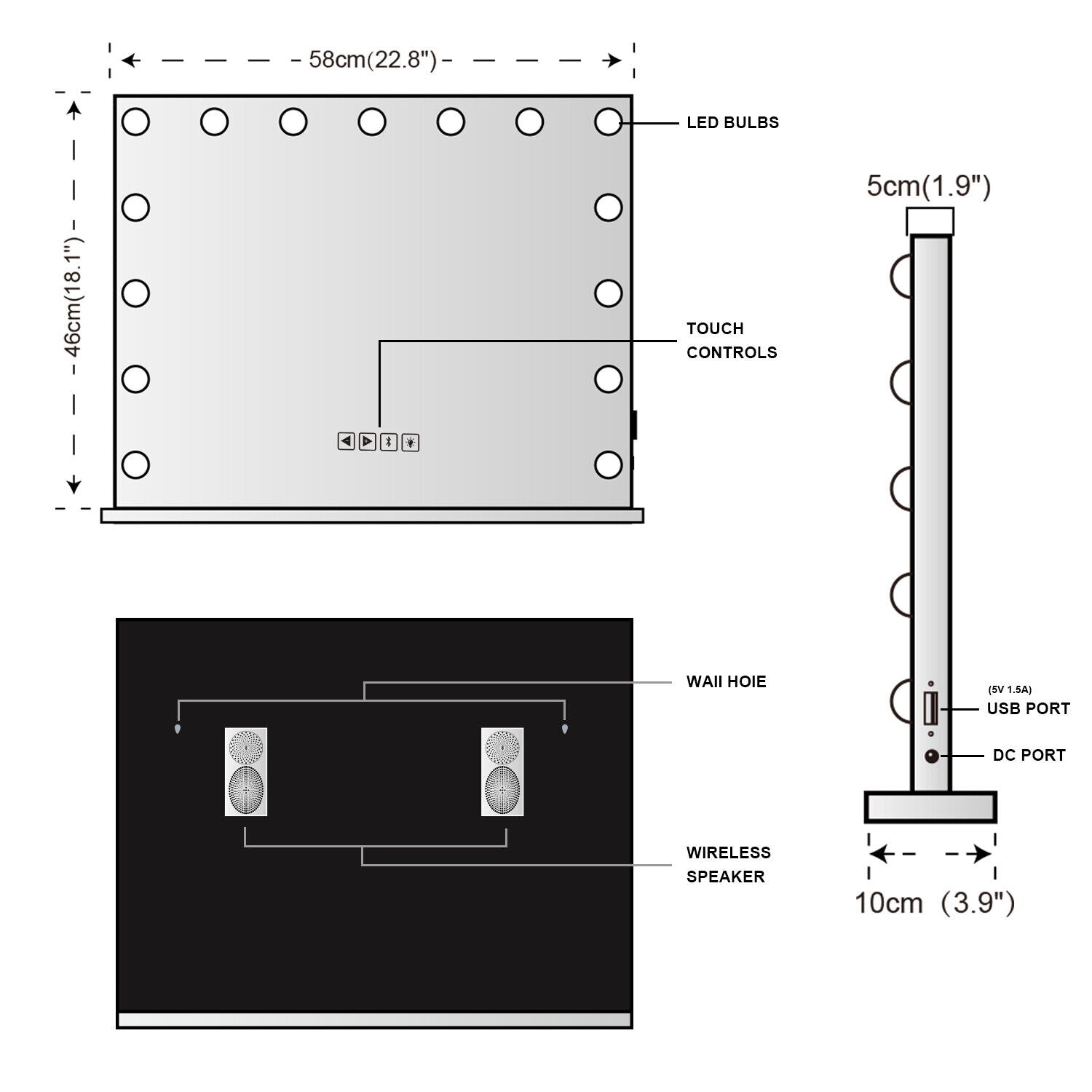 Hollywood LED Vanity Mirror Bluetooth Rectangle White Silver