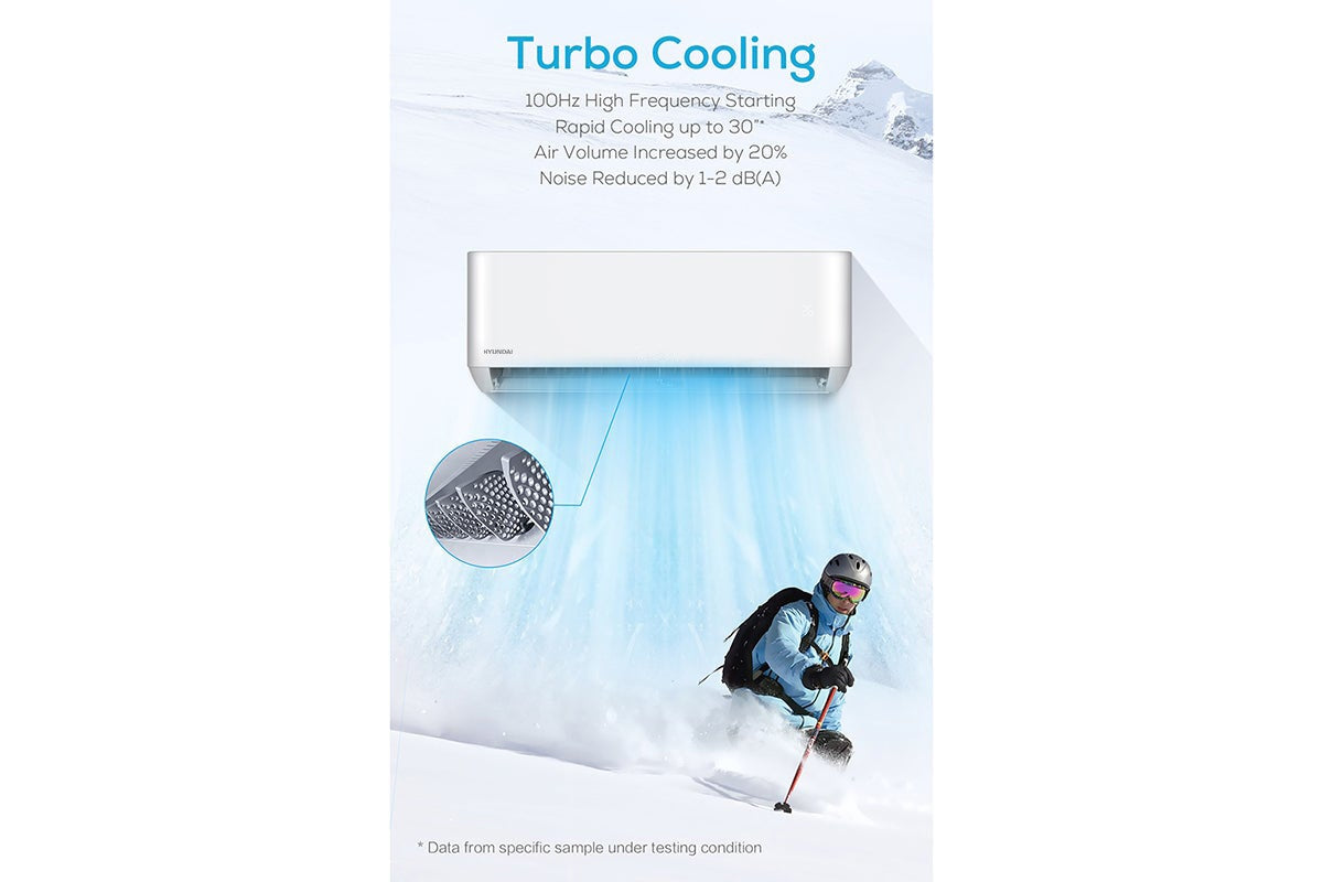 A modern inverter split AC unit with cooling and heating capabilities (reverse cycle). It features smart connectivity (Wi‑Fi / app / voice), multiple modes (cool, heat, dehumidify, fan), adjustable speeds, and quiet operation. Suitable for rooms of moderate size, offering year‑round comfort.