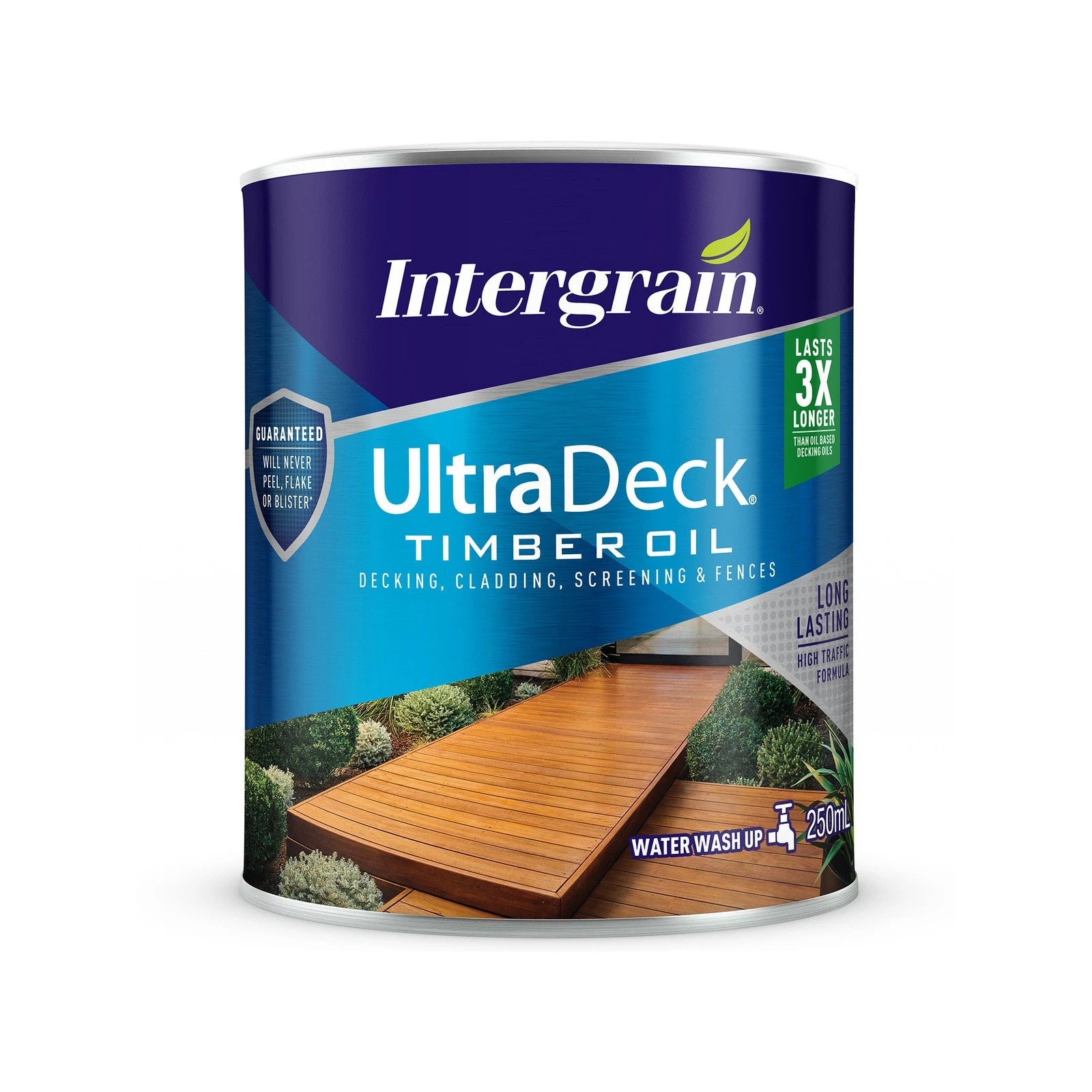 Includes 1 x 250ml bottle of Intergrain UltraDeck Timber Oil in Merbau.