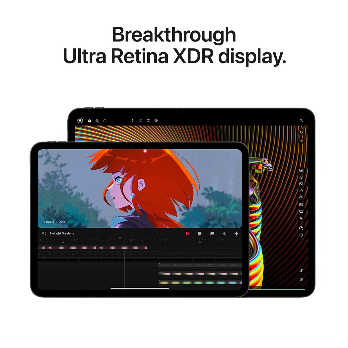 The 11-inch Ultra Retina XDR display delivers an exceptional visual experience with extreme brightness and contrast, exceptional colour accuracy, and advanced technologies like ProMotion, P3 wide colour, and True Tone.3 A nano-texture glass option is available for 1TB and 2TB configurations.