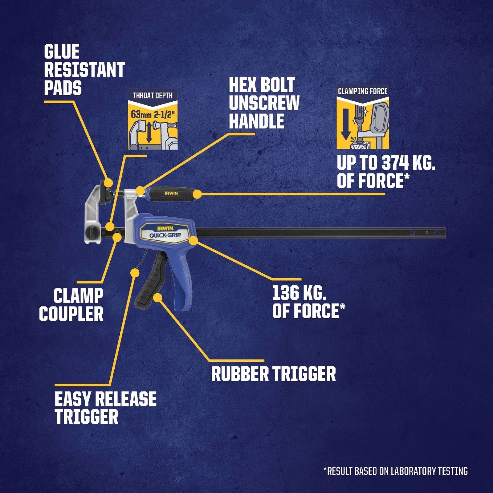 Upgrade your toolkit with this reliable, high-performance clamp designed to meet your demanding project needs. Whether working on tight spaces or requiring strong, consistent pressure, the IRWIN 450mm Quick Grip Hybrid Bar Clamp is your ideal solution.