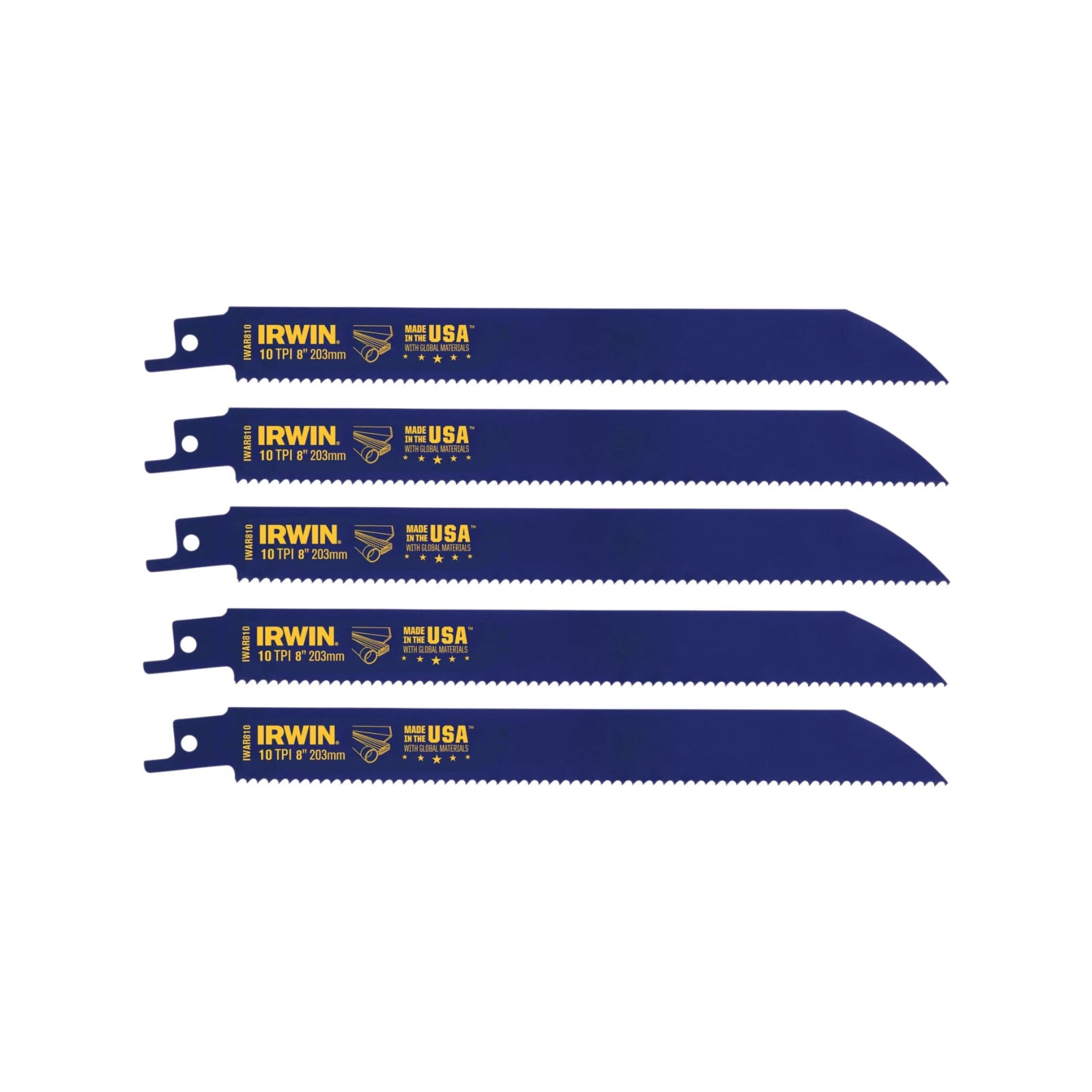 Upgrade your cutting tools with the Irwin 8-inch, 10 TPI Bi-Metal Reciprocating Saw Blades. Designed for versatility and durability, these blades deliver fast, smooth cuts through a variety of building materials. Perfect for professional contractors and DIY enthusiasts alike, this 5-Pcs offers reliable performance for all your cutting needs.