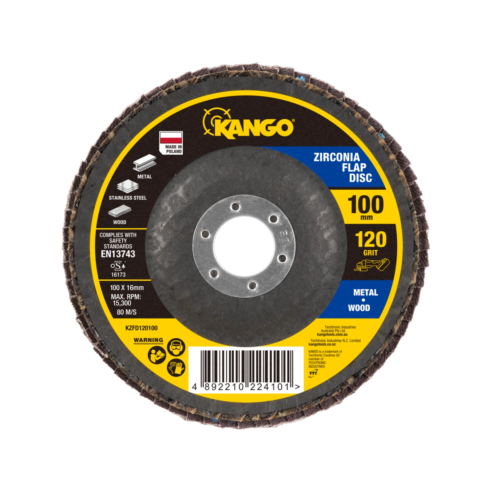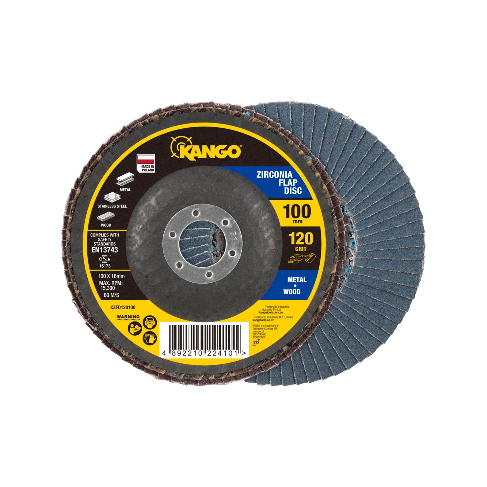 Upgrade your grinding and finishing tasks with the Kango 100mm 120G Zirconia Flap Disc. Designed for precision and efficiency, this high-performance disc is ideal for removing rust, stripping paints, and achieving clean welds on metal and wood surfaces. Its innovative design ensures smooth operation and superior material removal, making it a valuable addition to any workshop or toolbox.