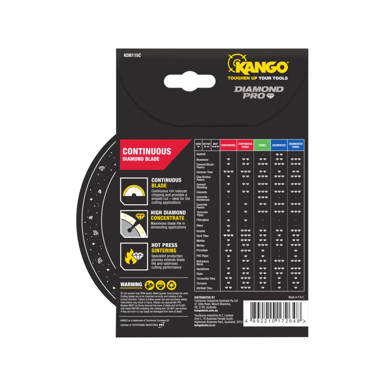 Upgrade your toolkit with the Kango 115mm Continuous Diamond Saw Blade and experience cleaner, faster cuts every time.