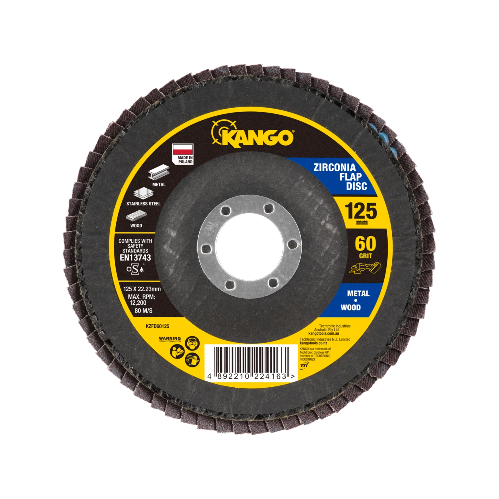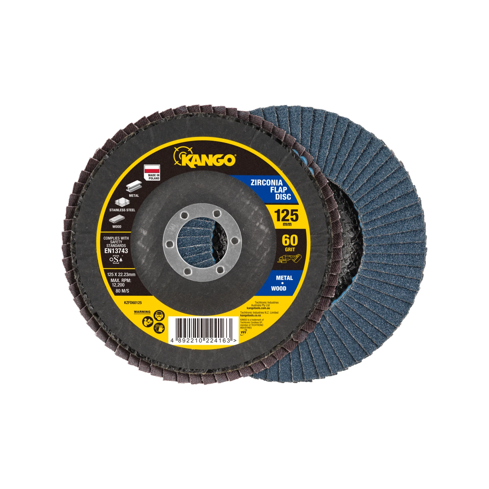 Achieve professional results with the Kango 125mm 60G Zirconia Flap Disc, designed for efficient material removal and surface finishing. Perfect for working on edges, weld seams, and small surfaces, this flap disc offers durability and precision for metal and wood applications.