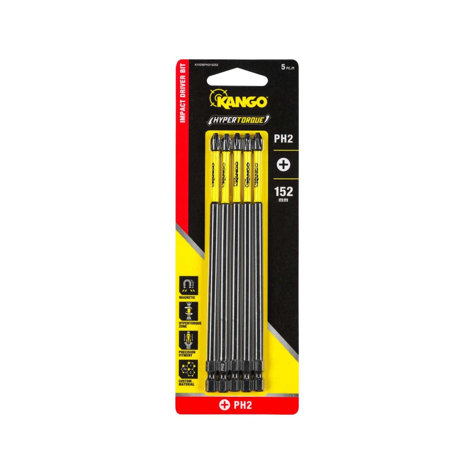 Upgrade your impact driving toolkit with the Kango 152mm Hypertorque PH2 Impact Driver Bit set. Designed for high-torque applications, these durable bits deliver reliable performance and enhanced fastener retention. Perfect for professional tradespeople and DIY enthusiasts alike, this 5-pack offers everything you need for efficient screw driving tasks.