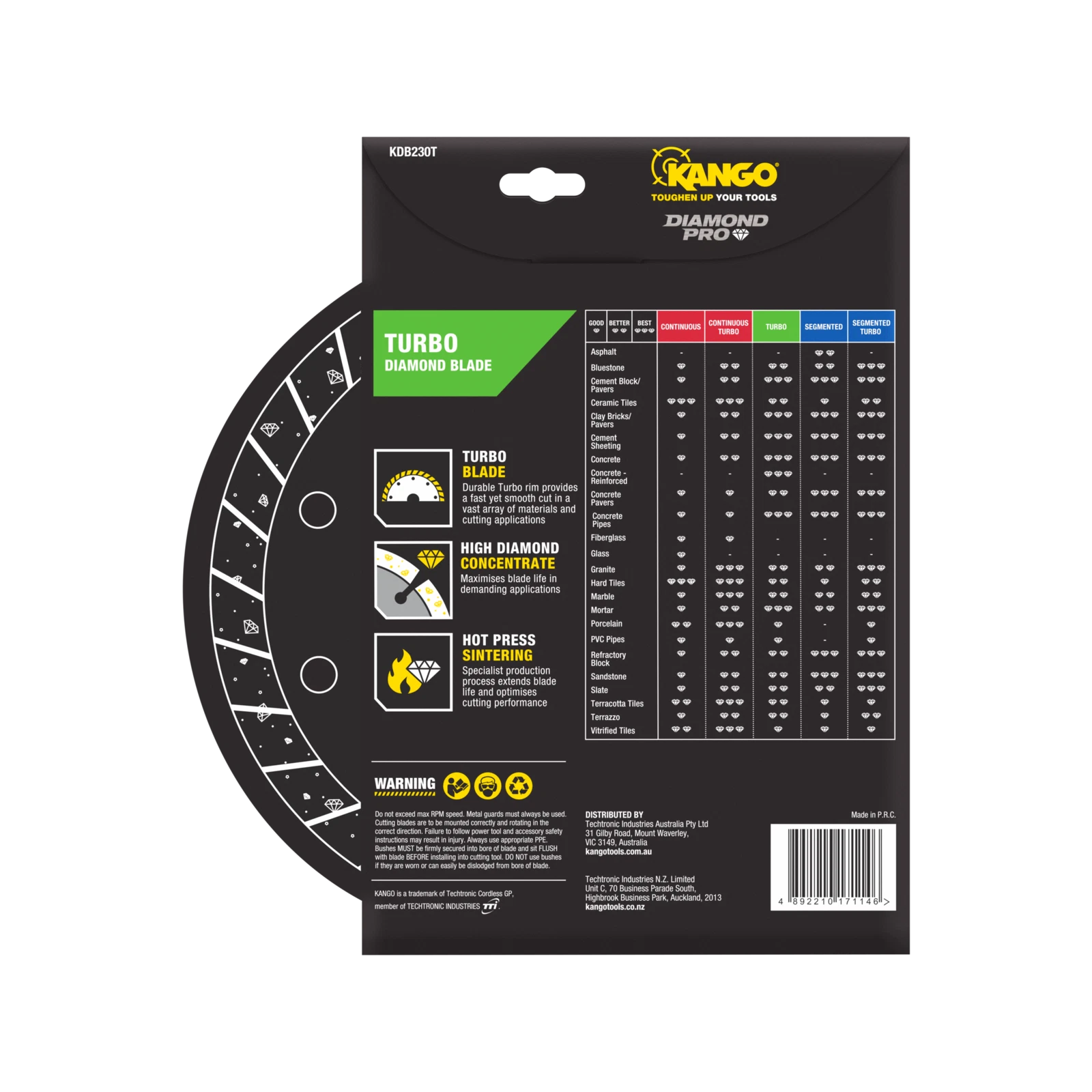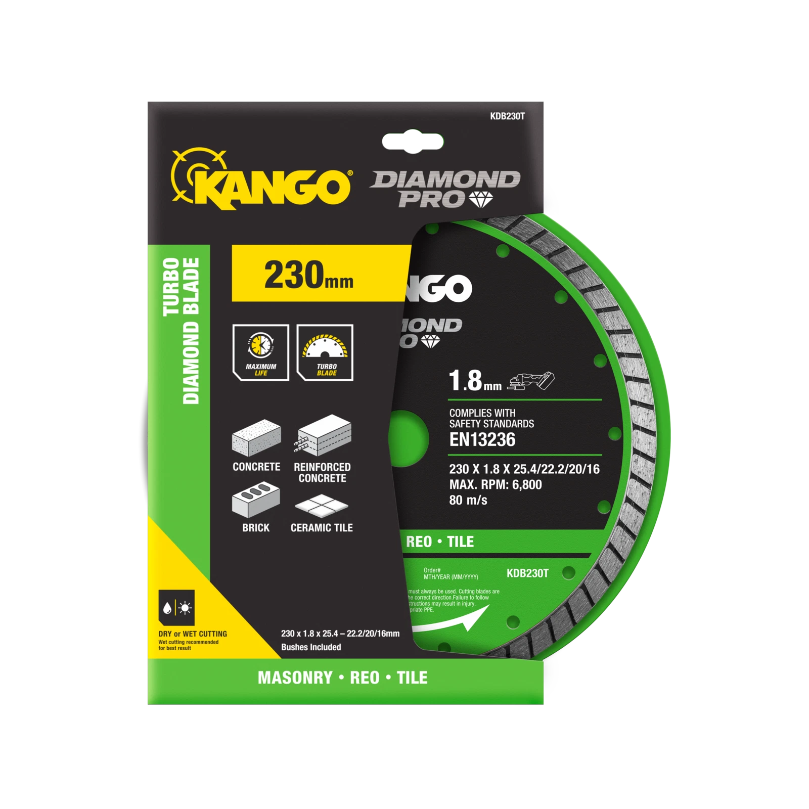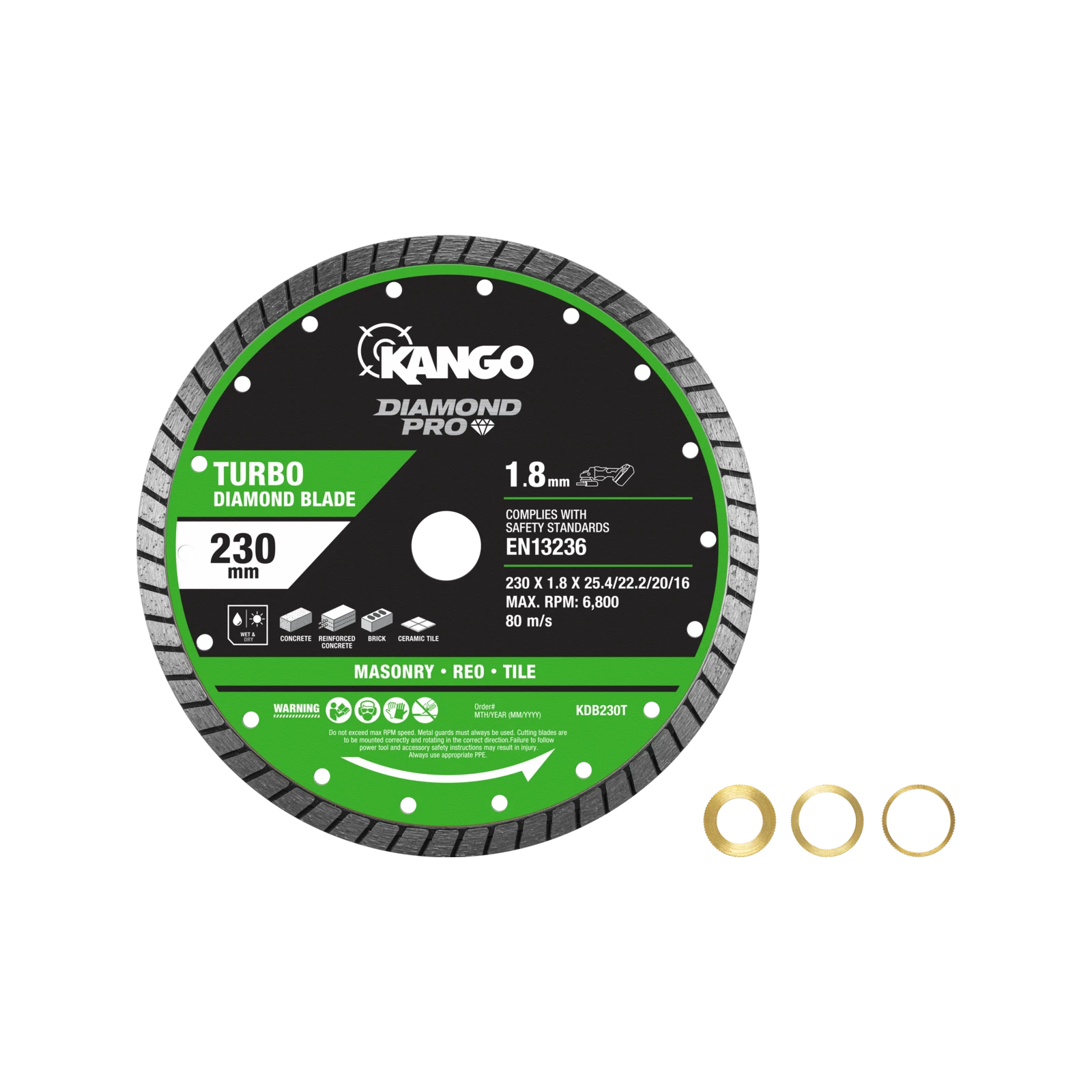 Upgrade your toolkit today with the Kango 230mm Ultra Thin Turbo Diamond Blade and experience professional-grade cutting power.