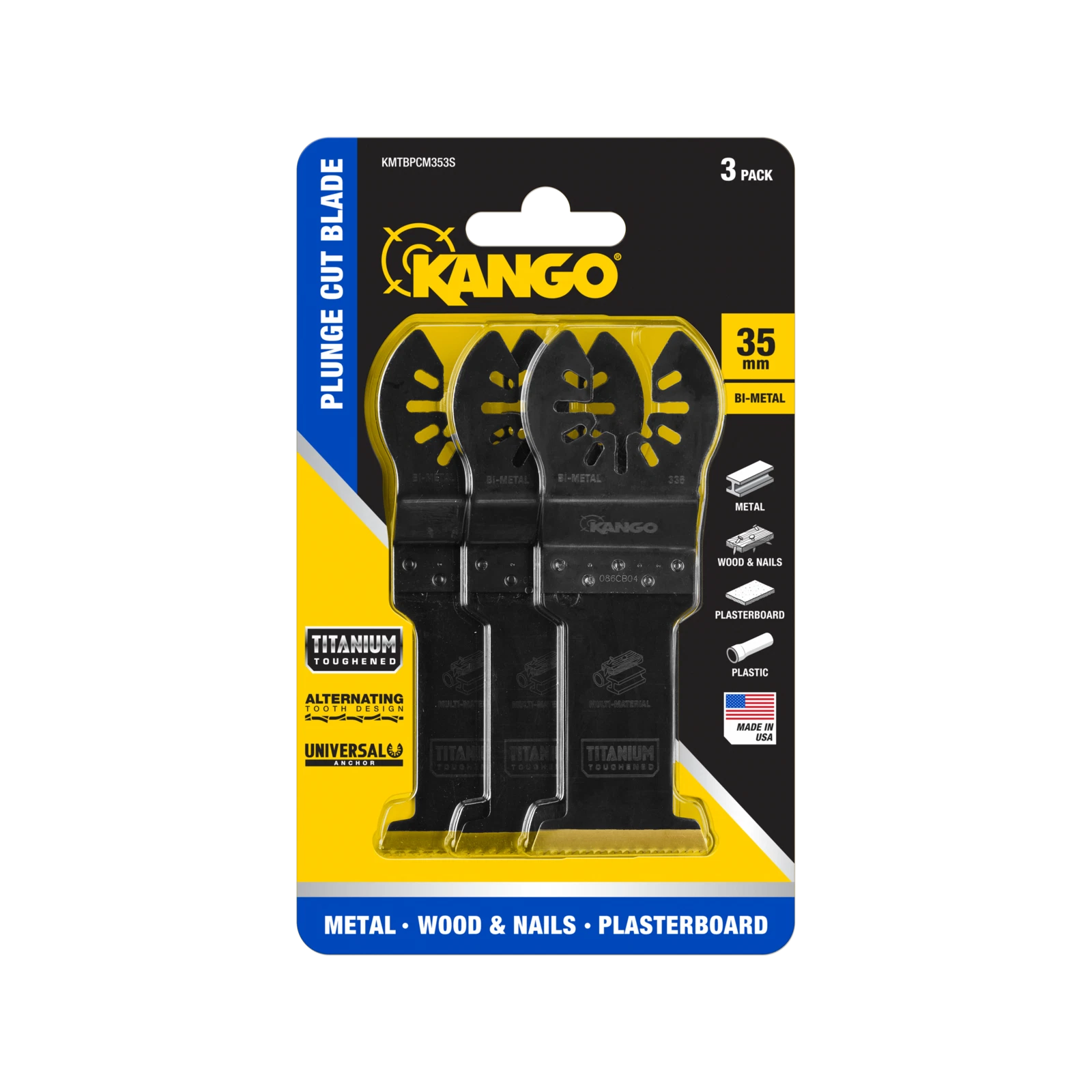 The Kango 35mm Plunge Cut Bi-Metal Blades enable fast, precise plunge cuts into various materials, making them ideal for removing embedded screws, bolts, and nails. Crafted in the USA, these blades are compatible with all multi-tools except Starlock models, ensuring broad usability for your projects.