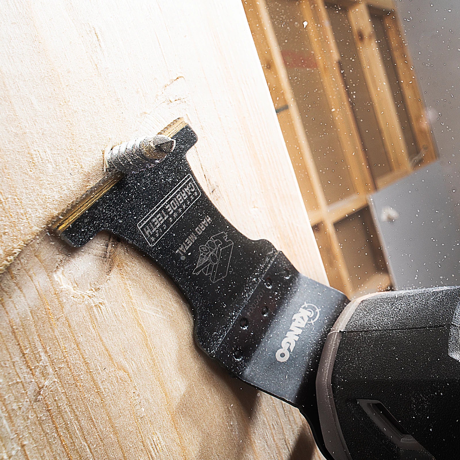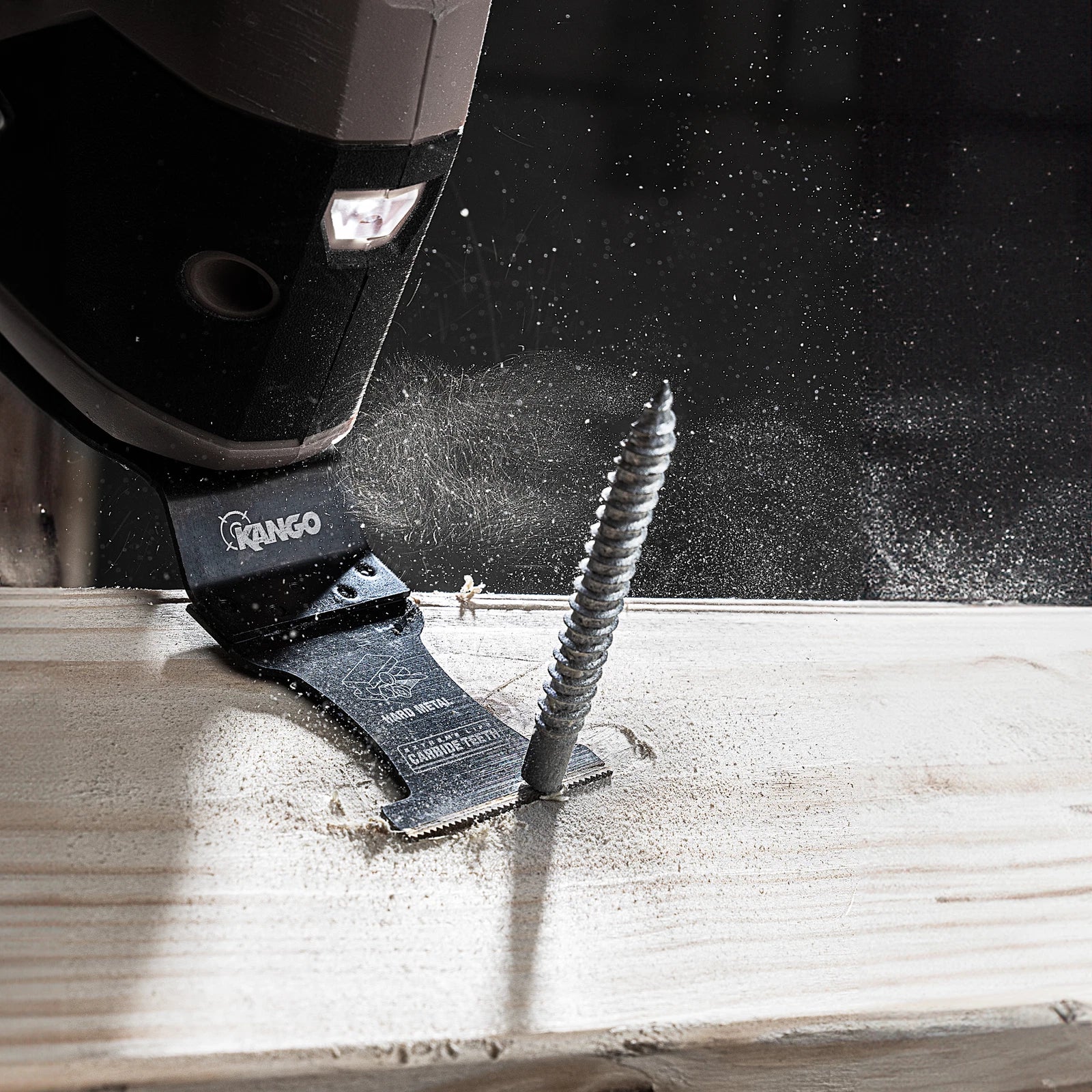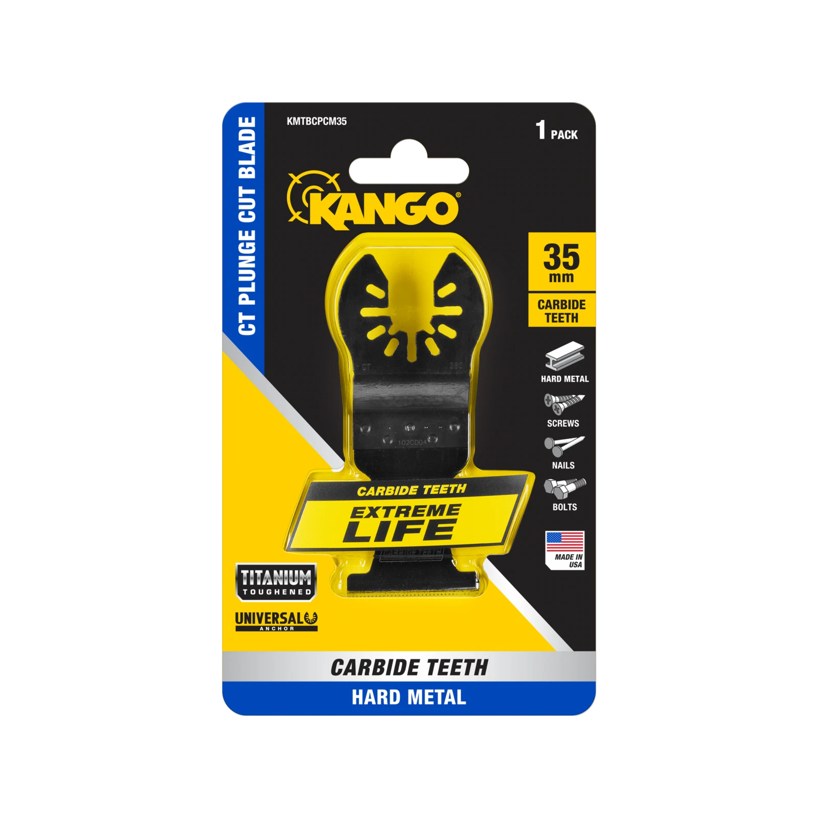 Achieve precise, fast, and durable plunge cuts with the Kango 35mm Plunge Cut Carbide Multi-Tool Blade. Designed for demanding tasks, this blade excels at cutting through embedded screws, bolts, nails, and other hard metals. Made in the USA, it offers reliable performance for a variety of demolition and renovation projects.