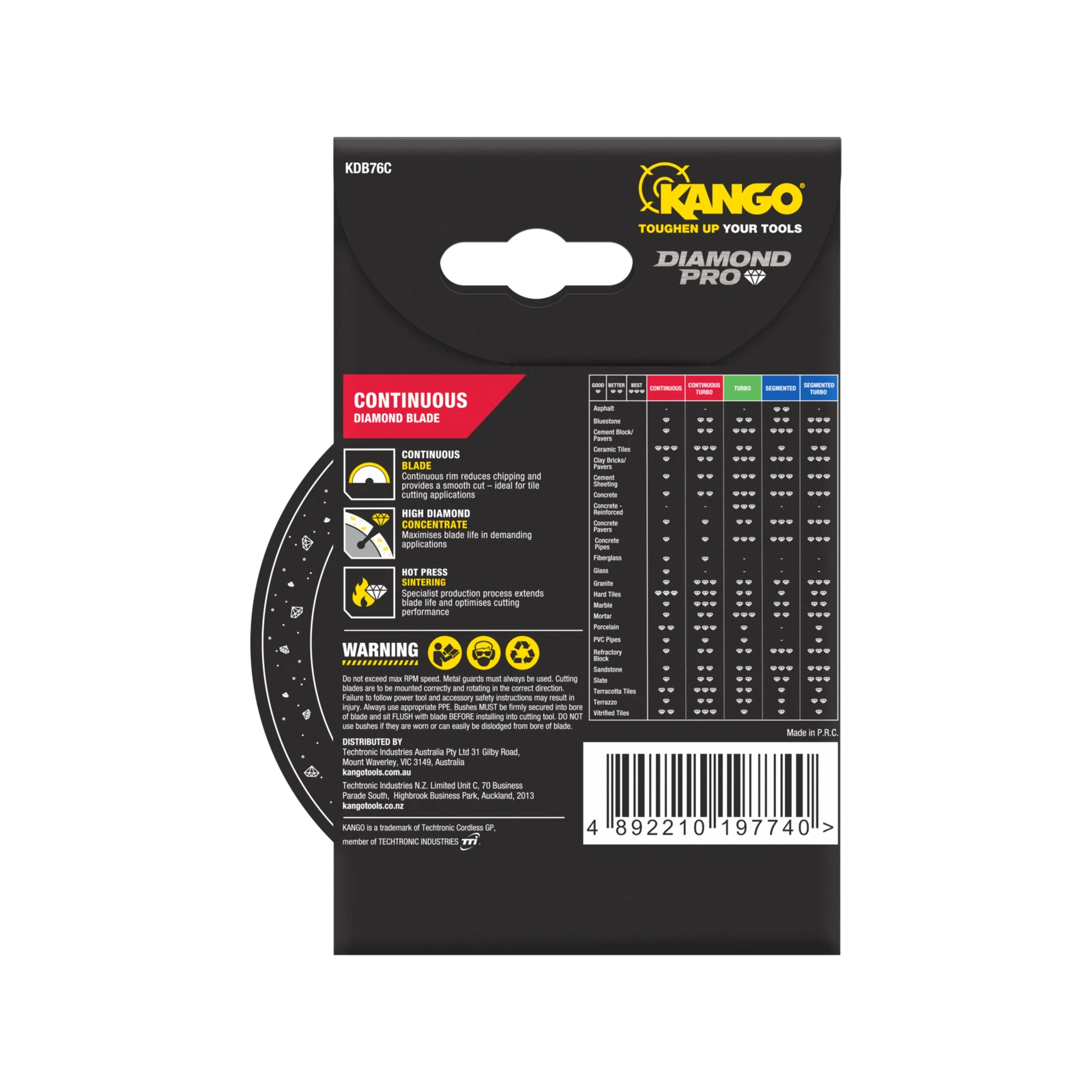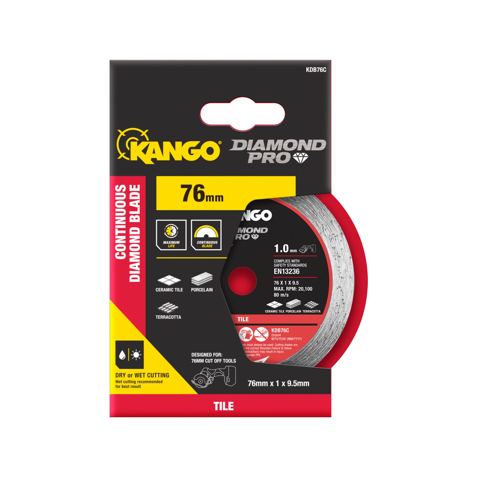 Upgrade your tile cutting toolkit with the Kango 76mm Continuous Diamond Blade. Designed for precision and durability, this blade makes notching and cutting tiles effortless, whether you're working on bathroom renovations or other projects. Its continuous rim ensures smooth cuts with minimal chipping, delivering professional results every time.