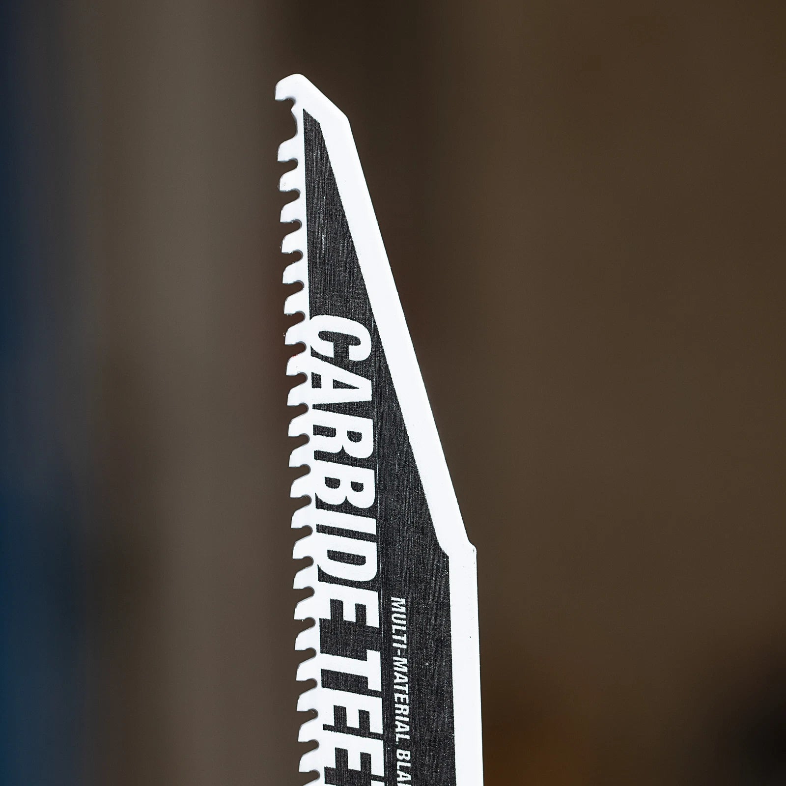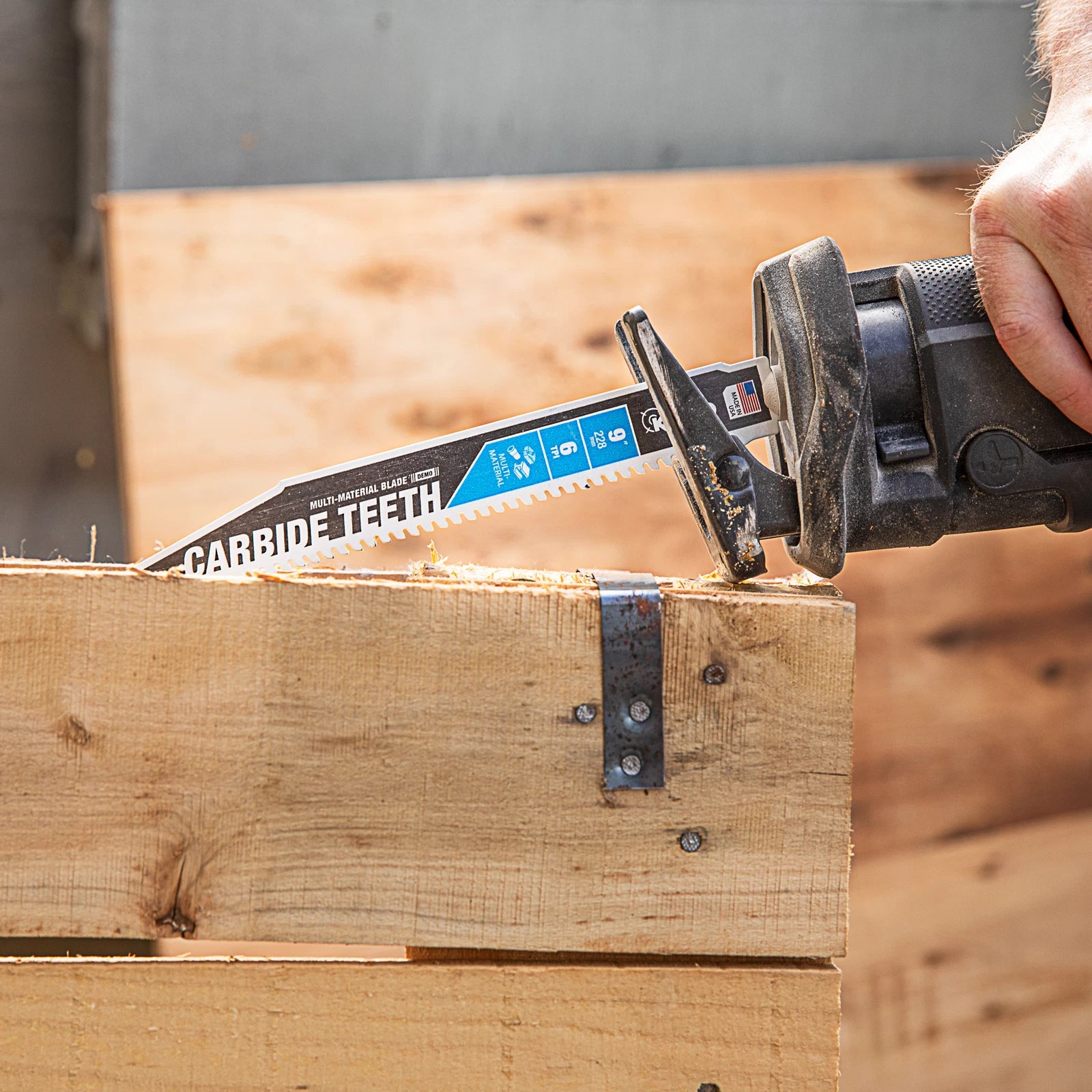 Use the Kango 9” Multi-Material Carbide Reciprocating Saw Blade for demolition jobs, electrical and plumbing rough-ins, skylight installation, vent stack installation, and other demanding tasks requiring versatile cutting capabilities.