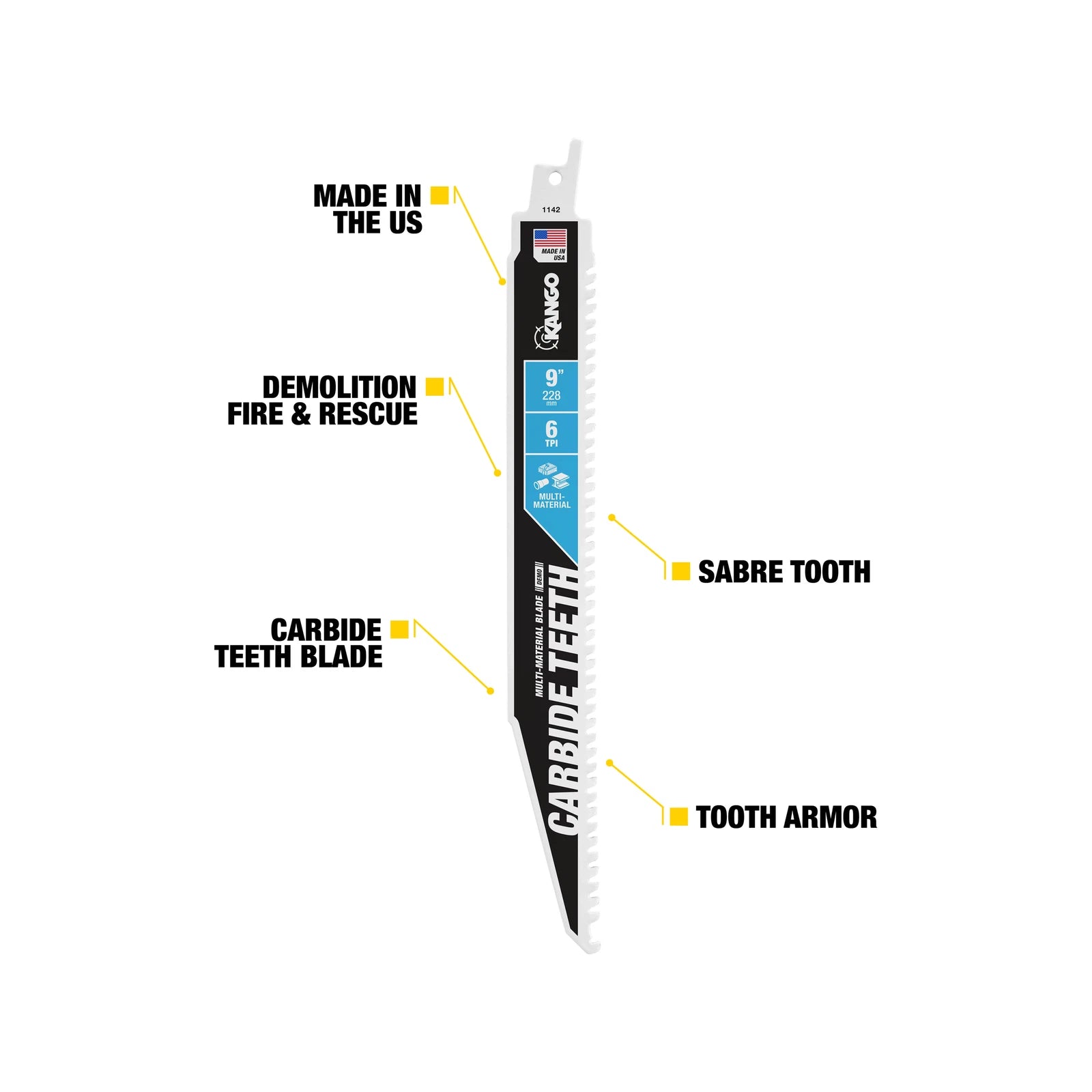 Upgrade your toolkit with the Kango 9” Multi-Material Carbide Reciprocating Saw Blades, designed for durability and versatility. Perfect for cutting through timber, metal, and plastic, these blades are ideal for demolition, electrical, plumbing, and renovation projects. Made in the USA, they deliver reliable performance and long-lasting use for tradespeople and emergency responders alike.