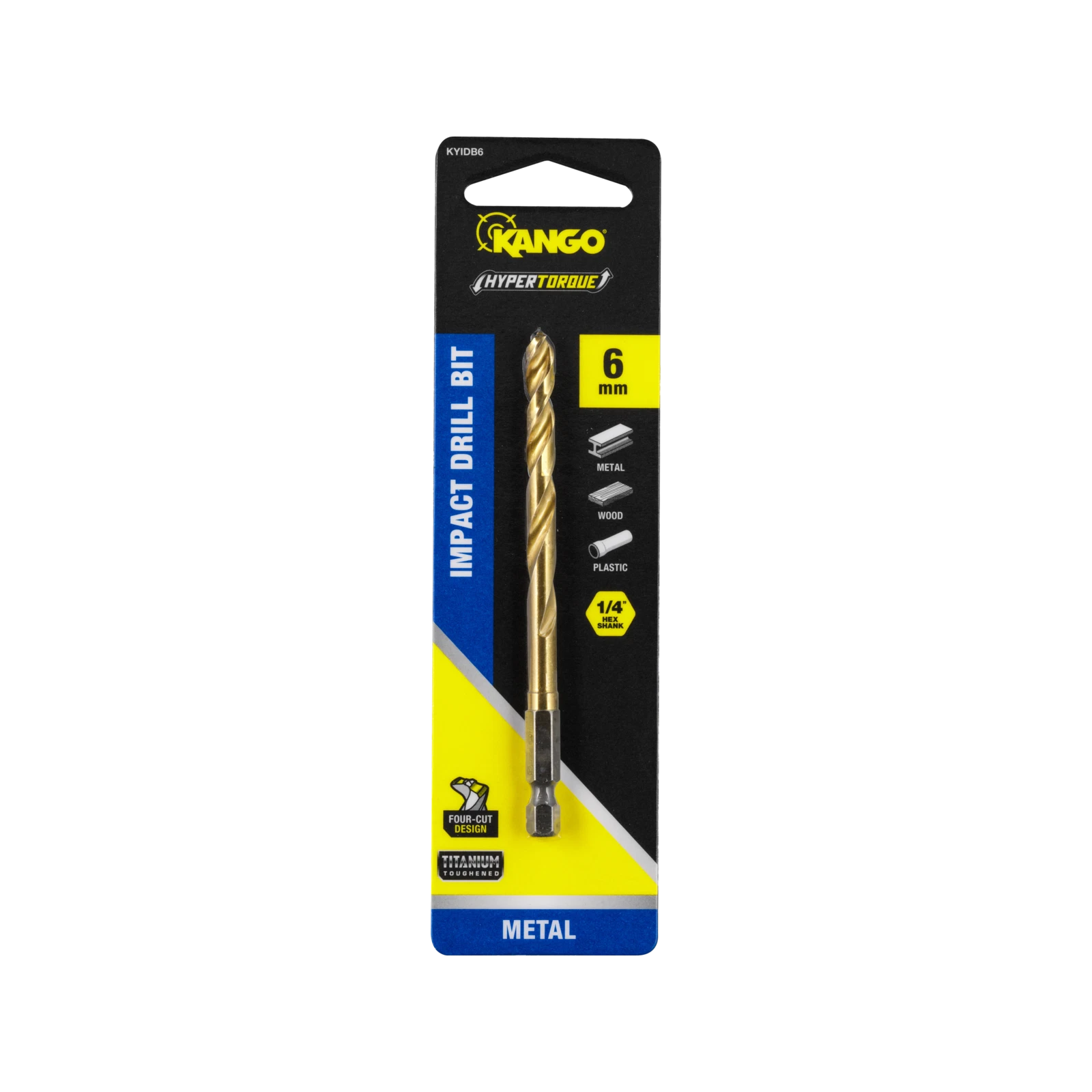 The Kango Hypertorque™ 6mm Impact HSS Drill Bit is engineered for clean, precise holes in plastic, timber, and metal when used with impact drivers. Its innovative four-cut tip design provides maximum contact with material, supporting faster drilling speeds and cleaner results. The 135° split point prevents wandering, while the tapered core design offers added durability. The variable flute shape ensures rapid debris ejection, enhancing overall drilling efficiency. Compatible with both drills and impact drivers, this drill bit is a reliable choice for demanding tasks.
