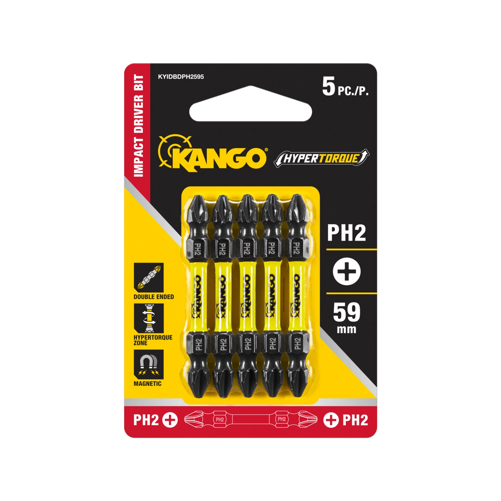 Upgrade your toolkit with the Kango HyperTorque™ Double-Ended PH2 59mm Impact Driver Bits Pack. Designed for high-torque applications, these durable bits deliver precision, efficiency, and extended lifespan for all your fastening needs. Perfect for use with drill drivers and impact drivers, this set offers excellent value and versatility.
