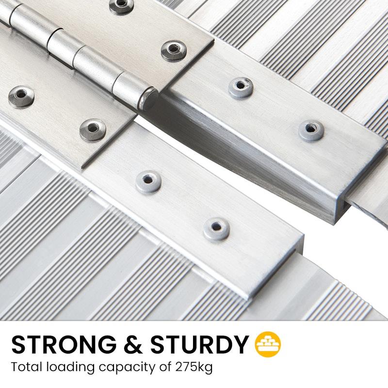 Experience the freedom of movement with the Kartrite Aluminium Portable Wheelchair Ramp R02. This ramp is designed for easy access to steps and kerbs, featuring a four-way folding design for convenient transport.