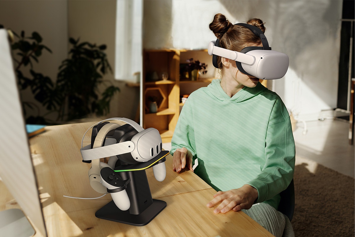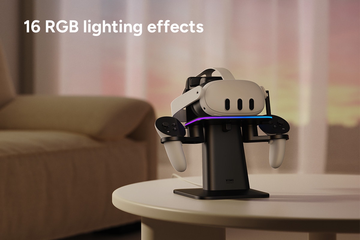 Keep your gaming gear organized and ready for action with the KIWI Design Charging Dock. Designed for Meta Quest headsets and controllers, this sleek, space-saving dock delivers hassle-free charging with added personalization options for a modern gaming setup.