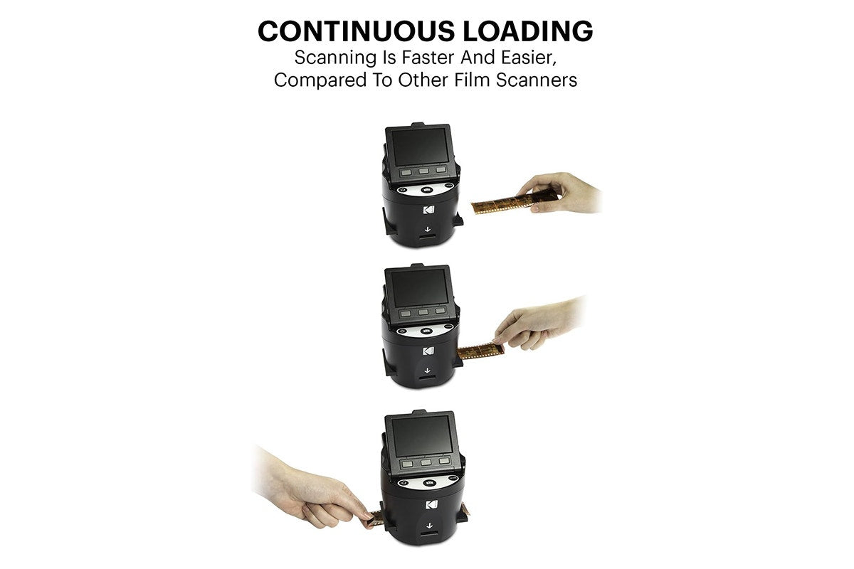 Powerful 14/22MP Kodak Film Scanner converts 35mm, 126, 110, Super 8 and 8mm negatives and slides into JPEG digital files in seconds.