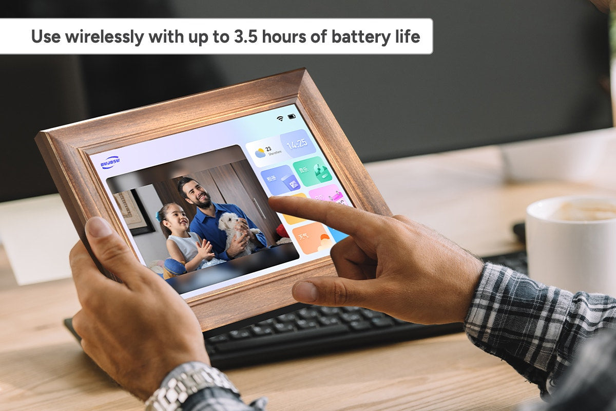 Forget about cluttered wires—this digital photo frame has a rechargeable battery that lasts up to 3.5 hours. With 32GB of internal storage and an additional 10GB of cloud storage, you have plenty of space to store hundreds of your cherished photos and videos. Plus, photos and videos can be sent to the frame via email and are automatically saved in the cloud for seamless access.