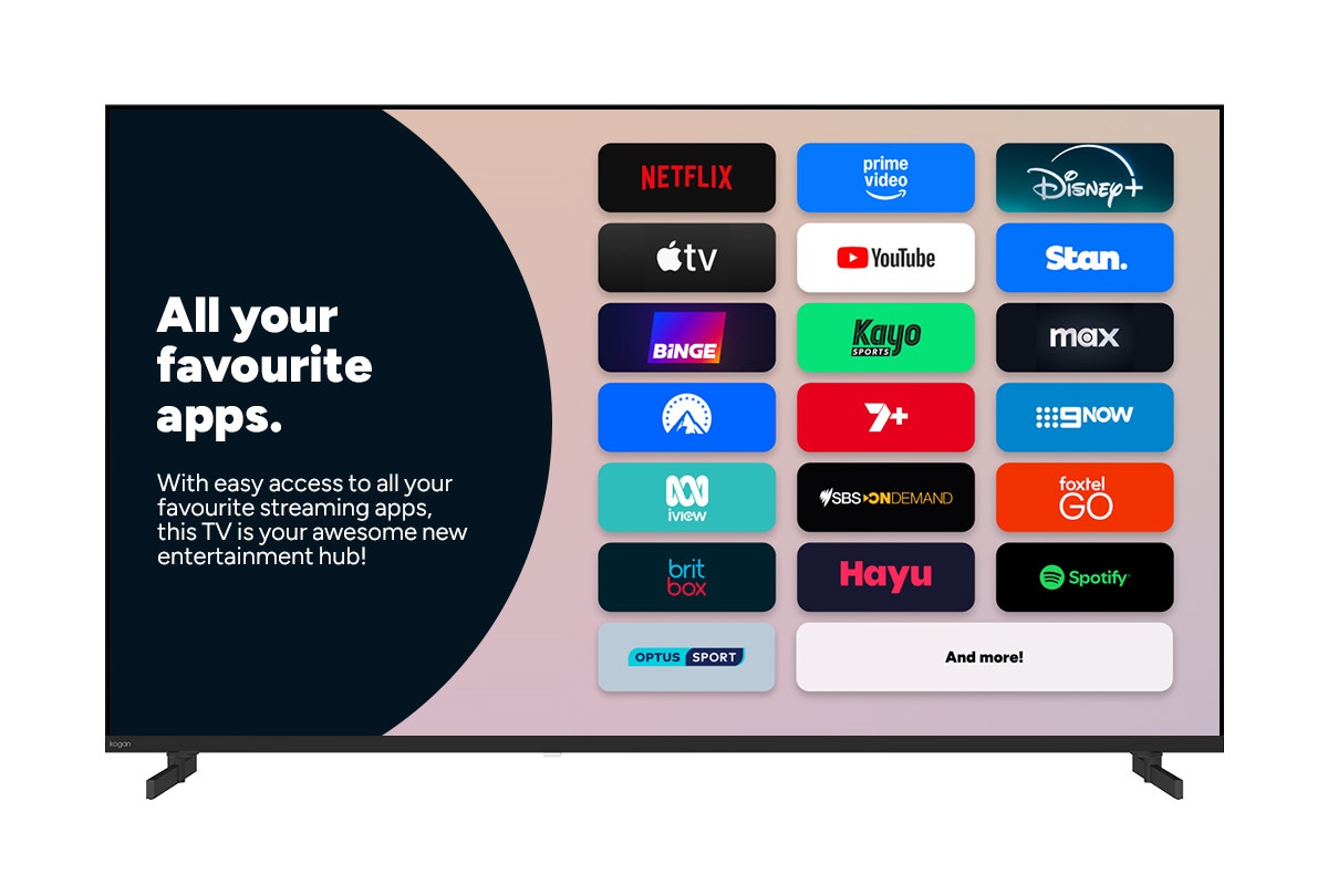Apps included: Netflix, YouTube, Disney+, Prime Video, Spotify, and more