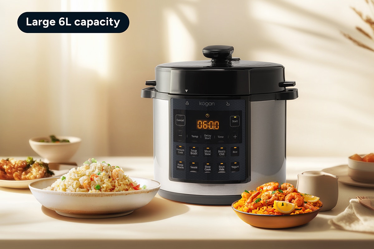Effortlessly prepare a variety of delicious dishes with the Kogan™ 6L 10-in-1 Multi Cooker, designed to streamline your cooking with versatile features, powerful performance, and safety in mind.