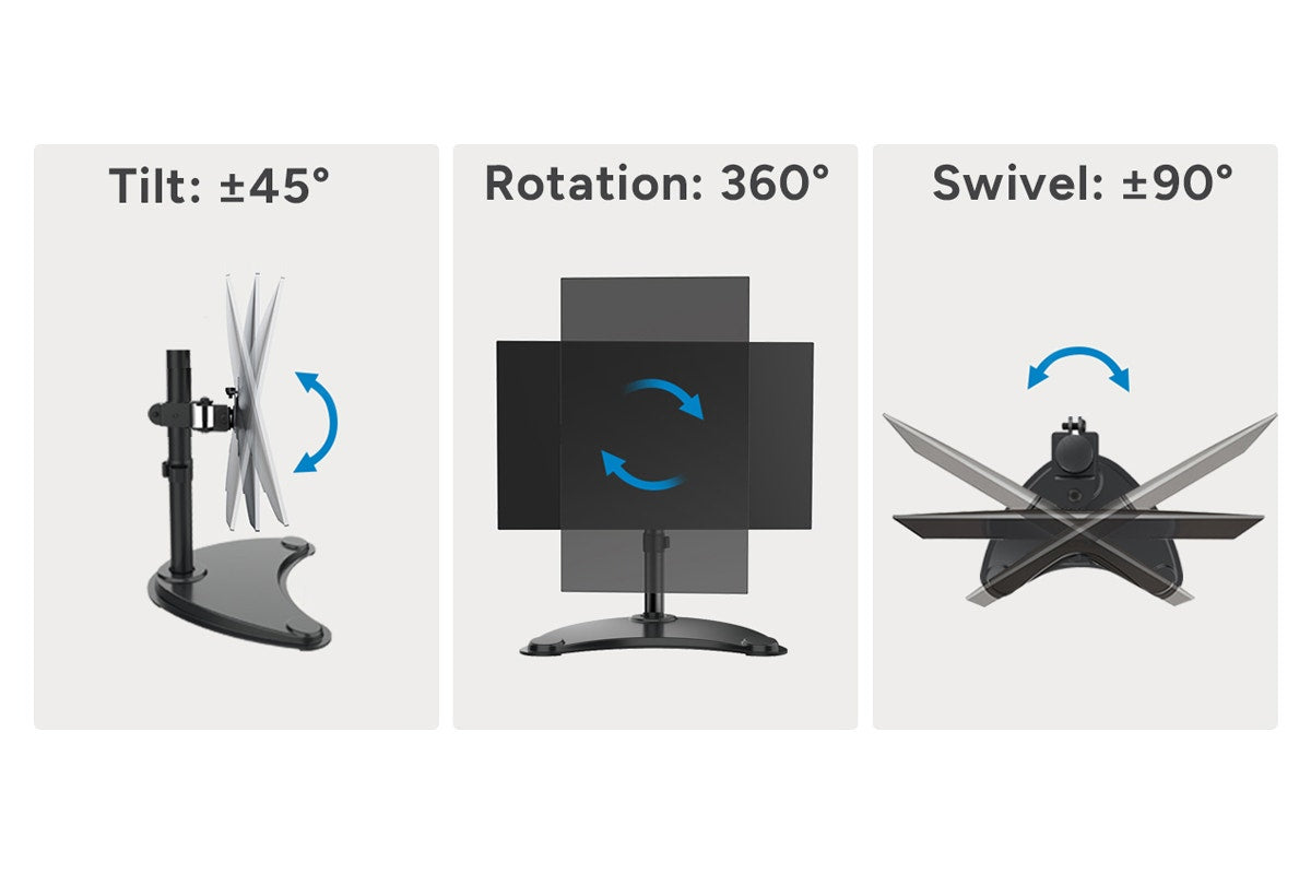 Adjust your workspace set-up to suit your preference thanks to the 360° rotation and fully adjustable arms that help increase desk space and improve the visibility of your monitor. Plus, the freestanding design offers extra flexibility to install the mount wherever you like.