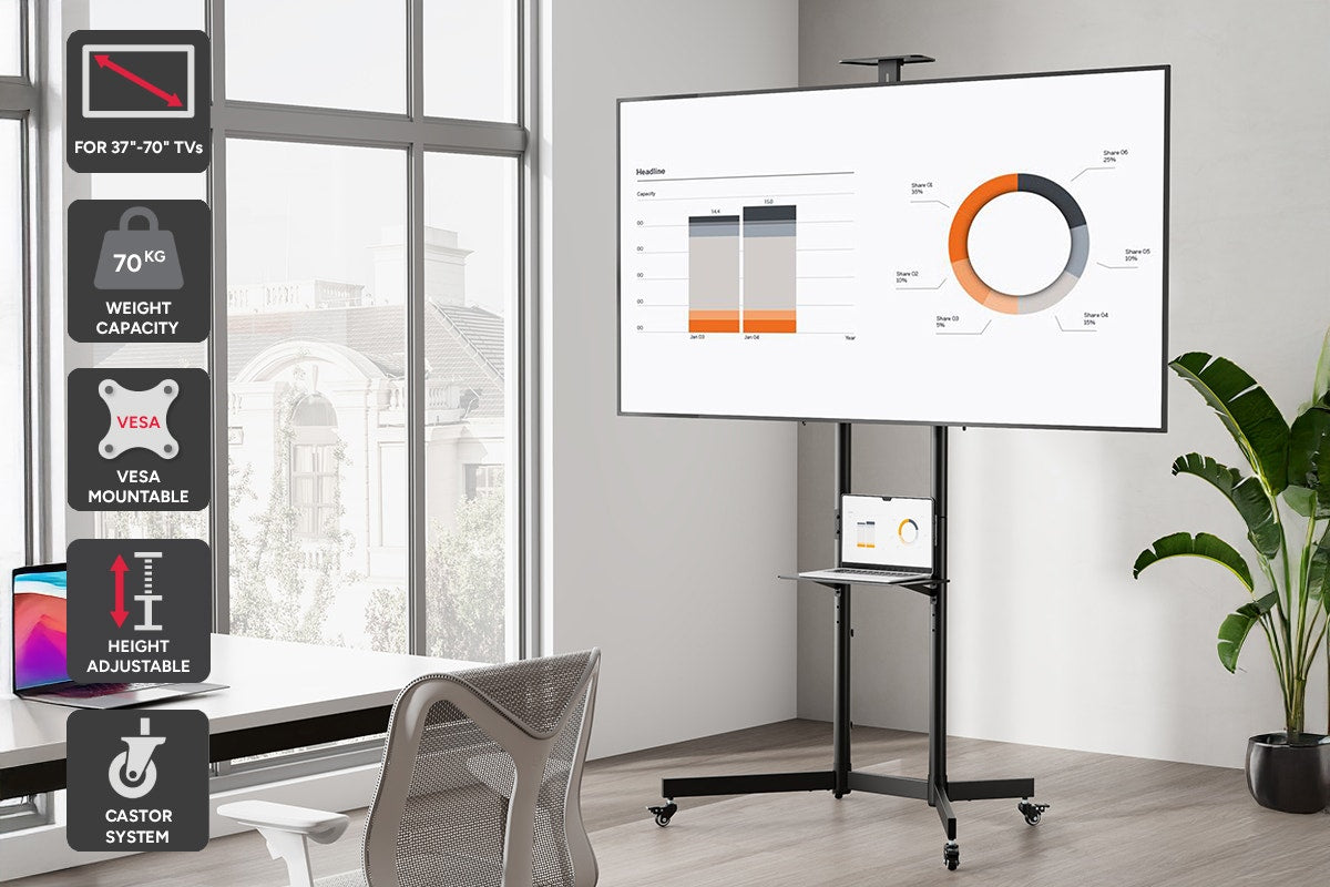 With a built-in accessory shelf, there’s space for laptops, media players or soundbars. Keep all your essential tools at hand, reducing clutter and improving efficiency in meetings or training sessions.