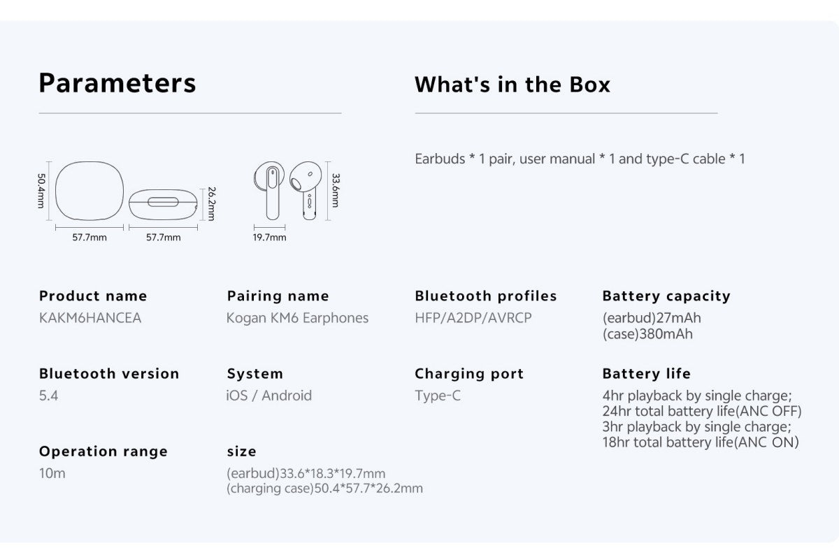 Block out distractions and enjoy pure sound with the KM6 Hybrid Active Noise Cancelling Wireless Earphones. With six microphones, smart Bluetooth connectivity and a compact charging case, these earphones deliver powerful audio and crystal-clear calls wherever life takes you.