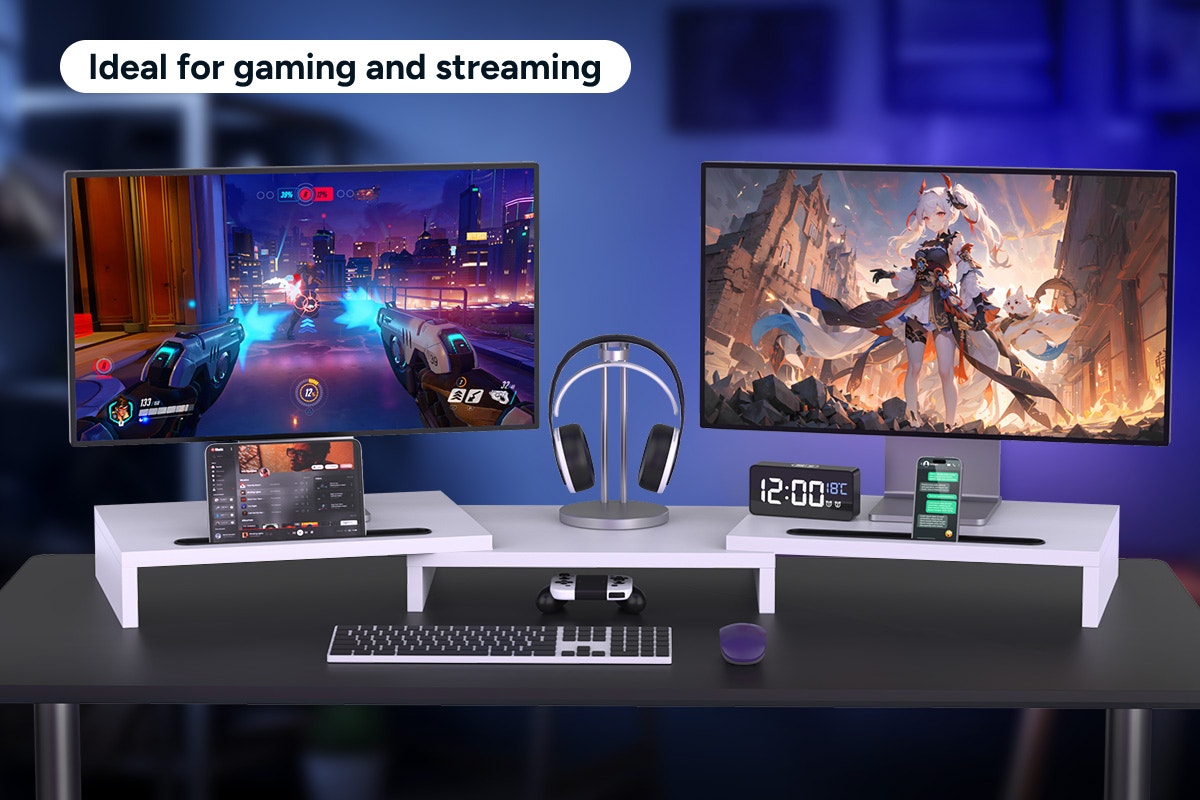 Whether you’re streaming, gaming or multitasking for work, this stand makes it easier to keep two screens in view. Enjoy greater productivity with an organised, professional setup.