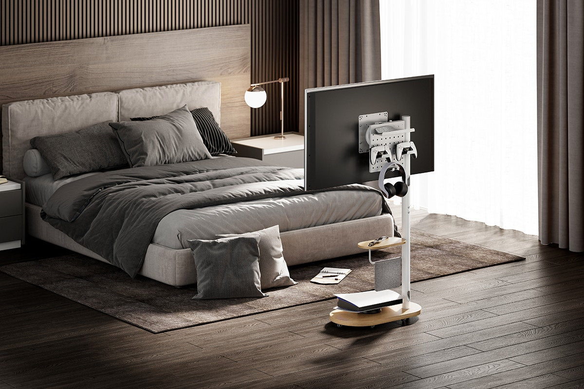 Stay organised with a dedicated storage shelf and included bag for your remotes, controllers and headphones. This added convenience keeps your entertainment essentials within easy reach while maintaining a clutter-free setup.