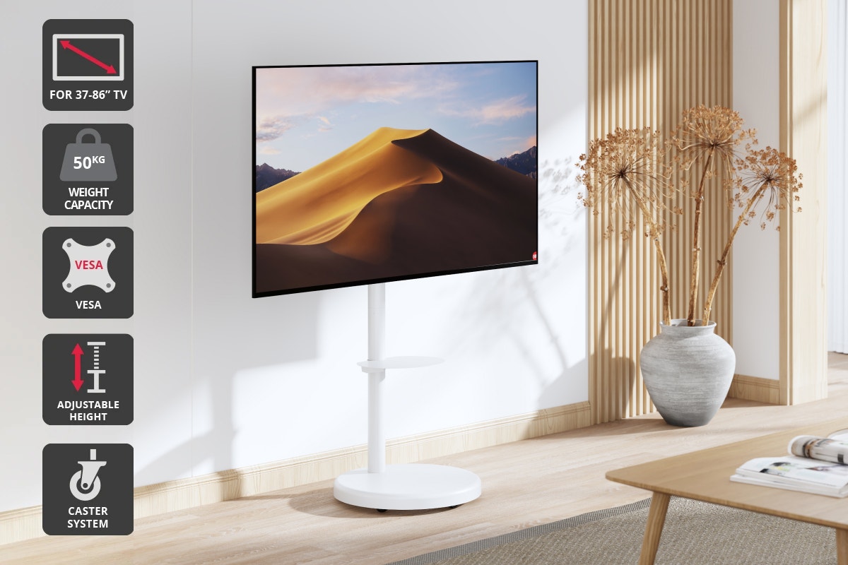 Add unrivalled versatility to your viewing experience with the Kogan™ Portable TV Floor Stand for 37”-86” TVs. This moveable stand combines style, flexibility and practicality for any setting.