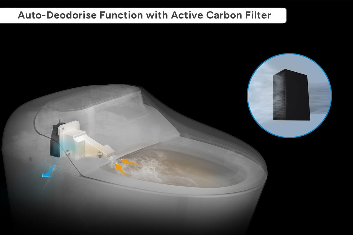 The built-in night light means you don’t need to switch on the bathroom light to find the toilet. Additionally, the soft-close lid and auto-deodorising function create a quiet, fresh, and convenient bathroom environment. These features ensure your bathroom stays welcoming and pleasant at all times.