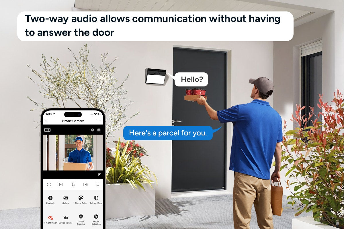 Use the built-in sound alarm to scare off intruders, while the bright spotlight and two-way audio let you intervene instantly. This is smart security that doesn’t just record – it protects.