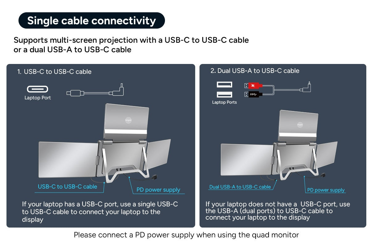 Tackle tab overload, cramped screens, and slow workflows with the Kogan™ XPRESSO 14” Full HD Pro Triple Screen Tri-Fold Portable Monitor – a powerful productivity tool for those who need to multitask, present, or work on the go without compromise.