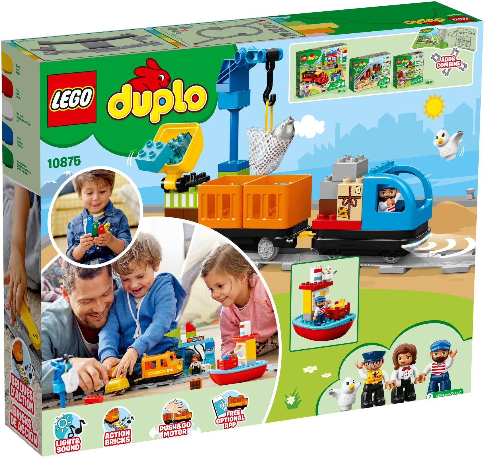 • Includes cargo train driver, captain, and shopkeeper LEGO® DUPLO® figures, plus a seagull figure.