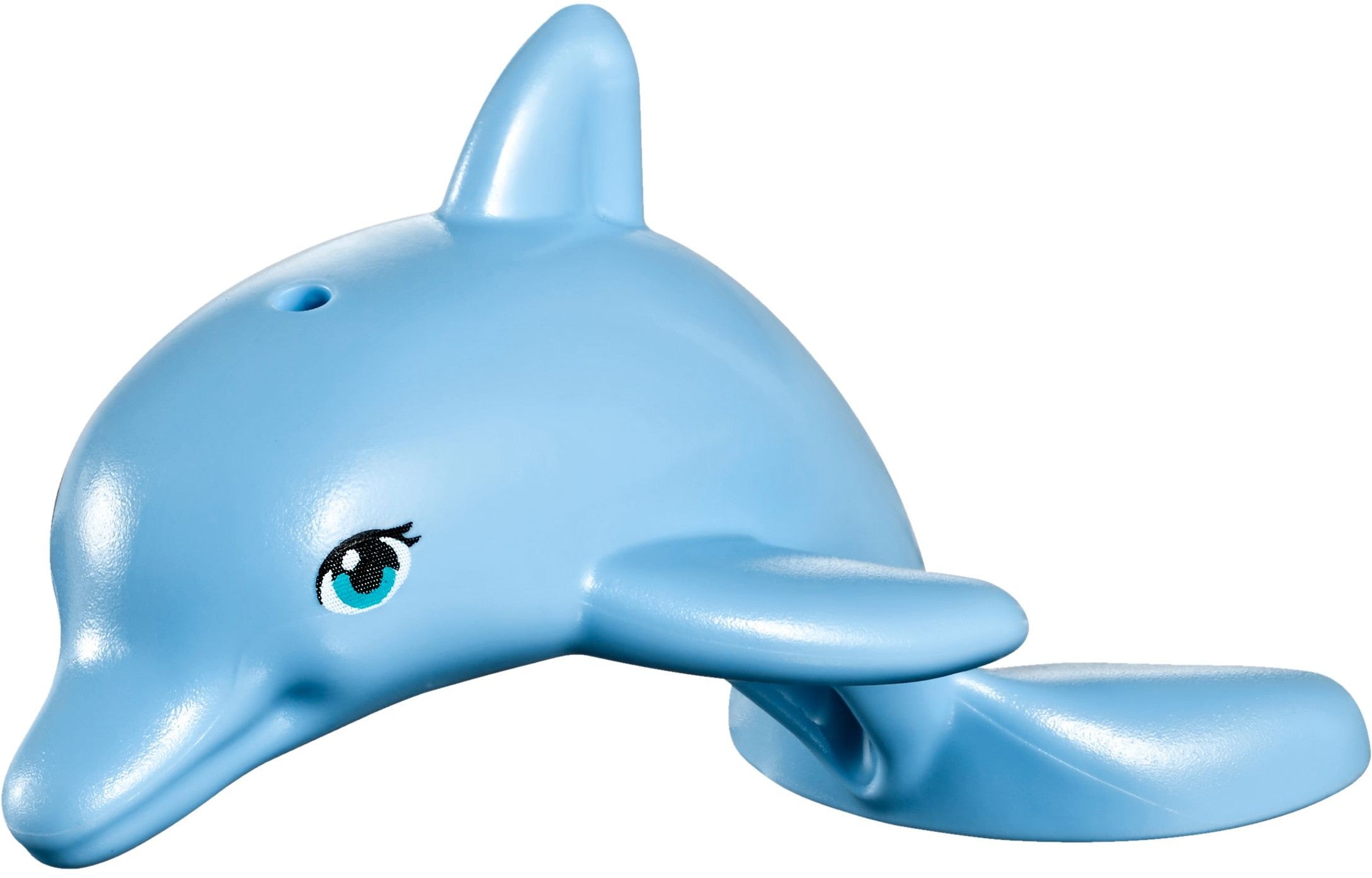 Take a luxury cruise on the LEGO® Friends Sunshine Catamaran, with a sun deck, pool, bridge, slide, spiral stairs, garage, and sliding doors into the living quarters. Lift the top off the boat for easy access to the kitchen, bedrooms, and lounge with a clear bottom. Use the personal water scooter to pull the banana boat or inflatable ring, and play with the friendly dolphin all day long. Includes 3 mini-doll figures and 2 dolphin figures.