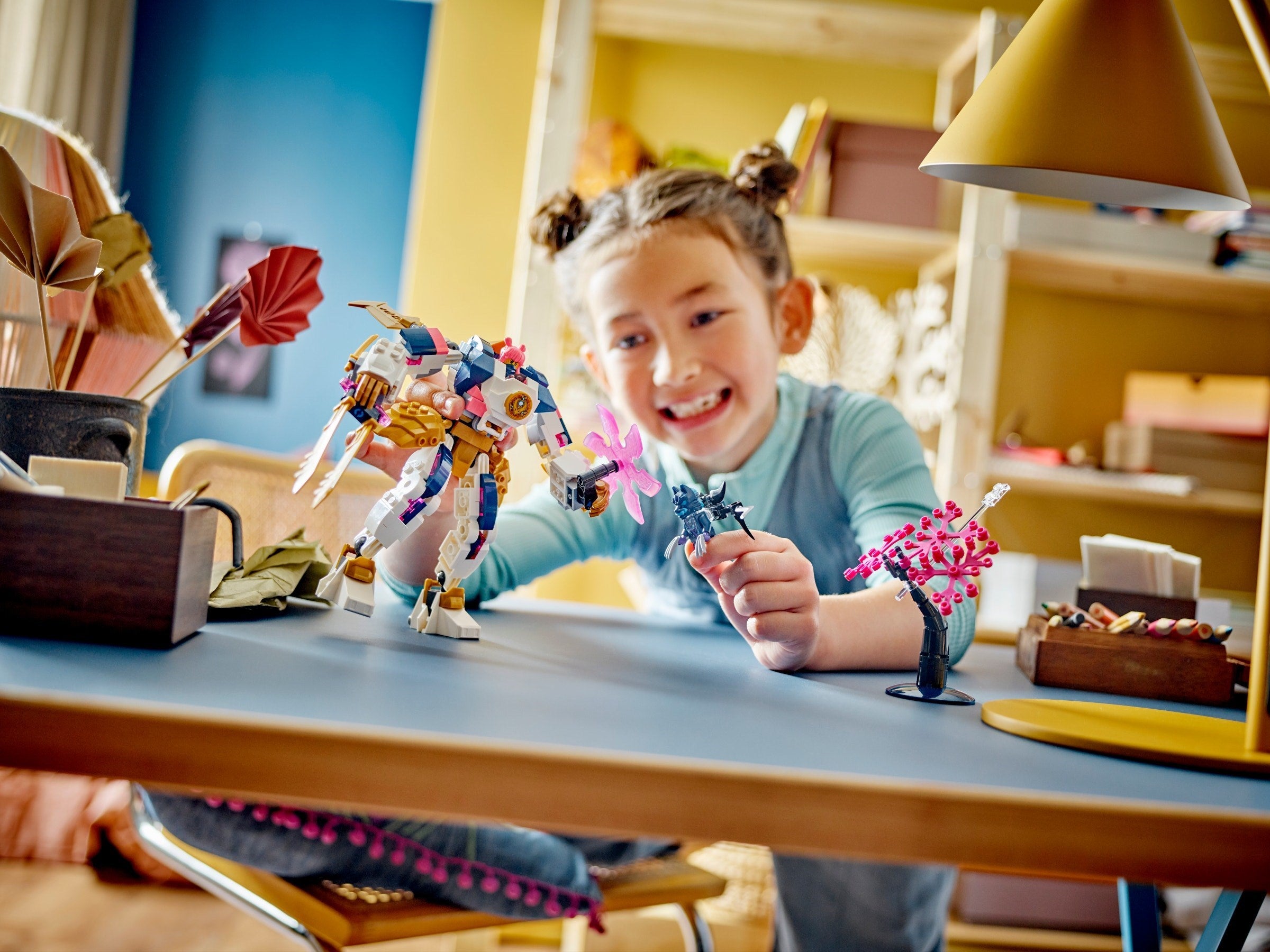 Boys and girls aged 7+ can recreate stories from season 2 of the NINJAGO Dragons Rising TV show with the Sora’s Elemental Tech Mech (71807) adventure toy. The cool mech has posable arms and legs that kids can tilt and twist into dramatic battle stances, plus a large sword accessory, a rotating blade, and a cockpit to place a Ninja minifigure inside.