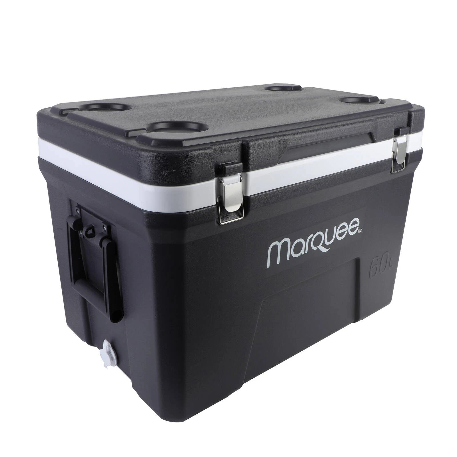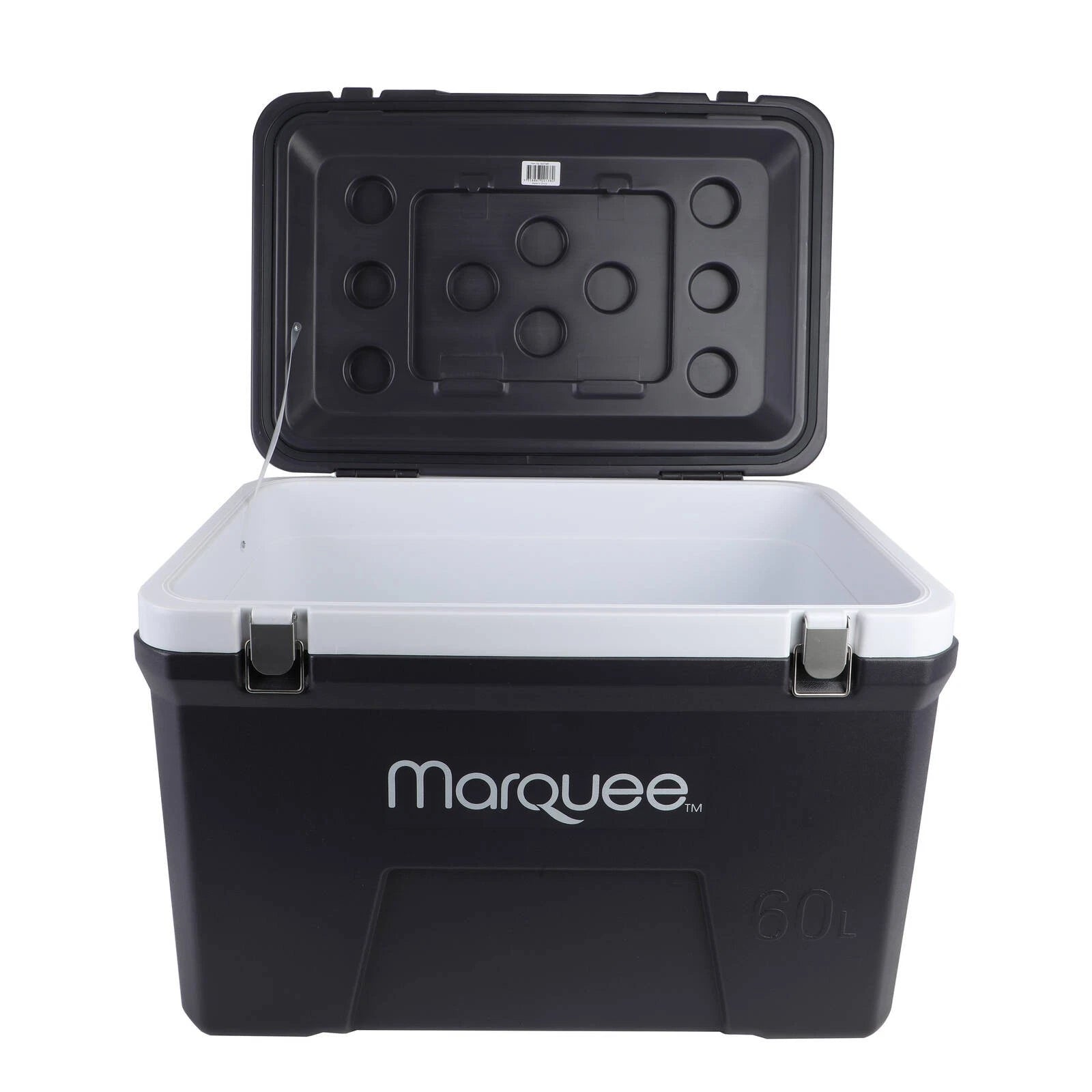 The Marquee 60L Insulated Hard Cooler combines functionality with durability. Its large capacity makes it perfect for camping trips, tailgates, or large gatherings. The integrated ice brick holder in the lid adds extra cooling, while the drain plug simplifies water removal. With sturdy handles and secure lid clasps, this cooler is built to withstand outdoor adventures and provide reliable performance.