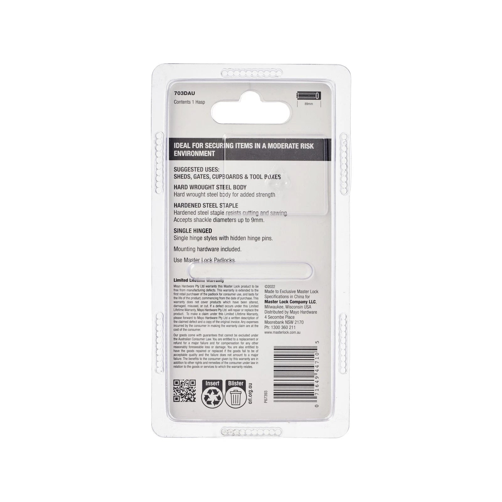 Secure your valuables with the durable and reliable Master Lock 89mm Hard Wrought Steel Hasp and Staple. Designed for strength and weather resistance, this high-quality locking hardware is ideal for a variety of security applications.