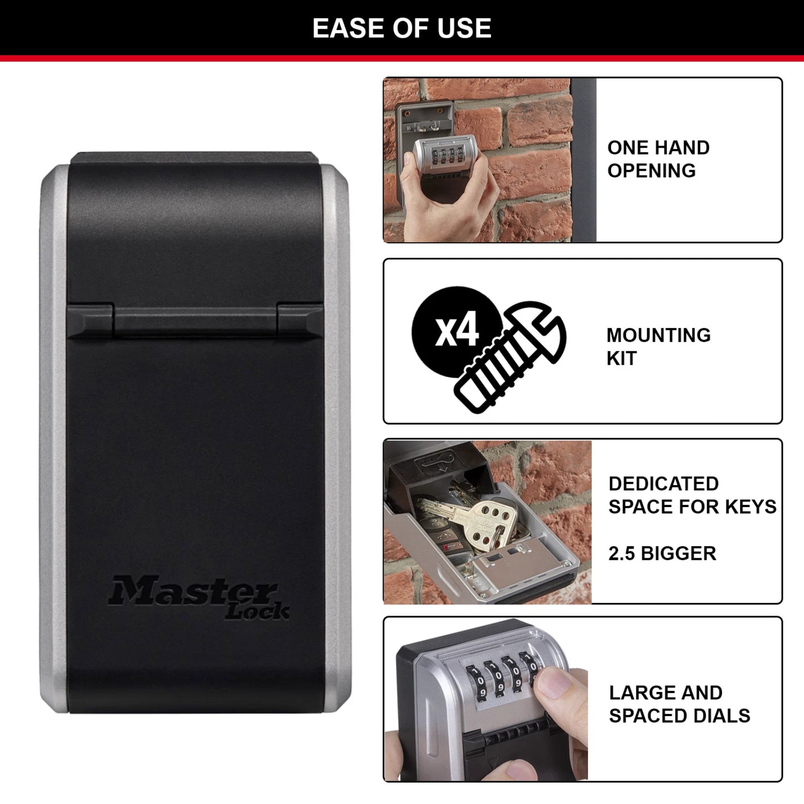 Secure your keys and small valuables with the Master Lock Wall Mount Next Gen Key Safe. Designed for durability and ease of use, this innovative lock box offers reliable access control for homes, offices, rental properties, and job sites. Its robust construction and user-friendly features make it an ideal choice for safeguarding your assets while providing quick, convenient access to trusted individuals.